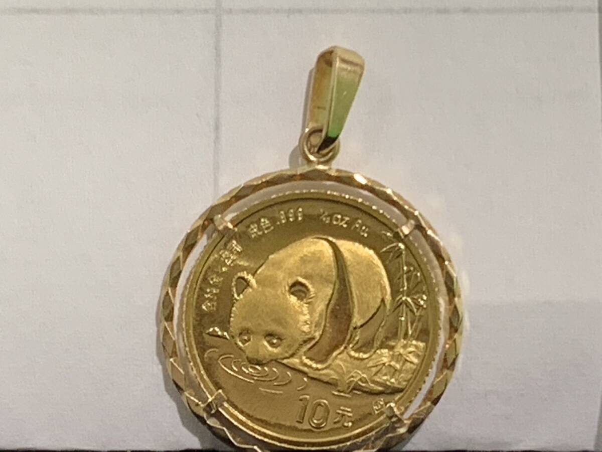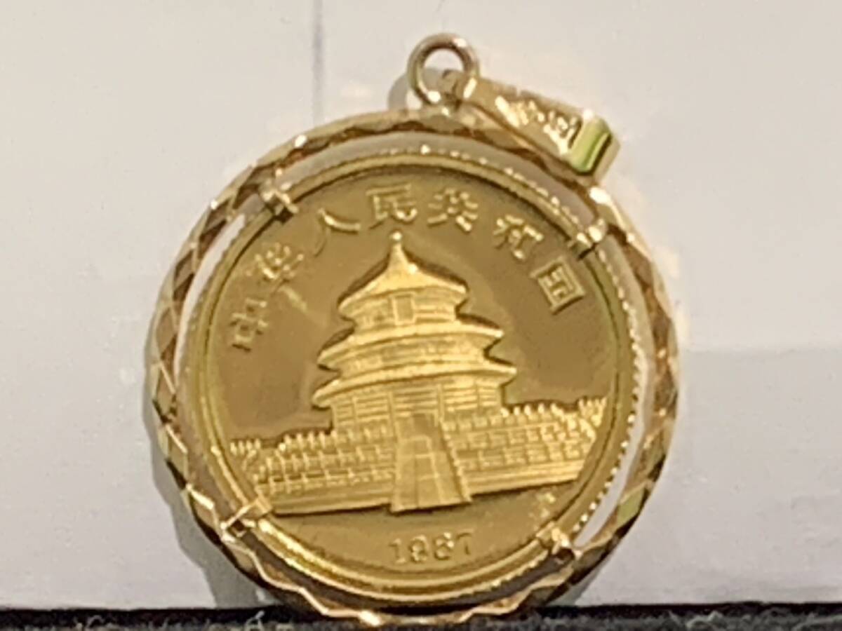 ☆純金 1987年 チャイナ パンダ金貨 1/10オンス ゴールド 10元 中国コイン ペンダントトップ/デザイン枠 K18 ホールマーク ヘッド チャーム 約4.1g☆彡 | ||