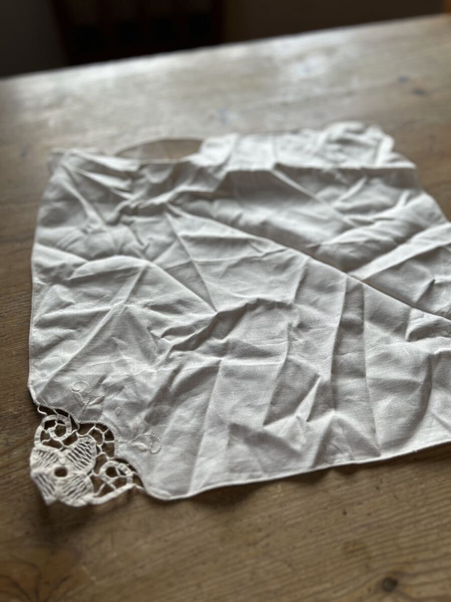 生活雑貨屋で買ったヴィンテージ風の刺繍の布です。