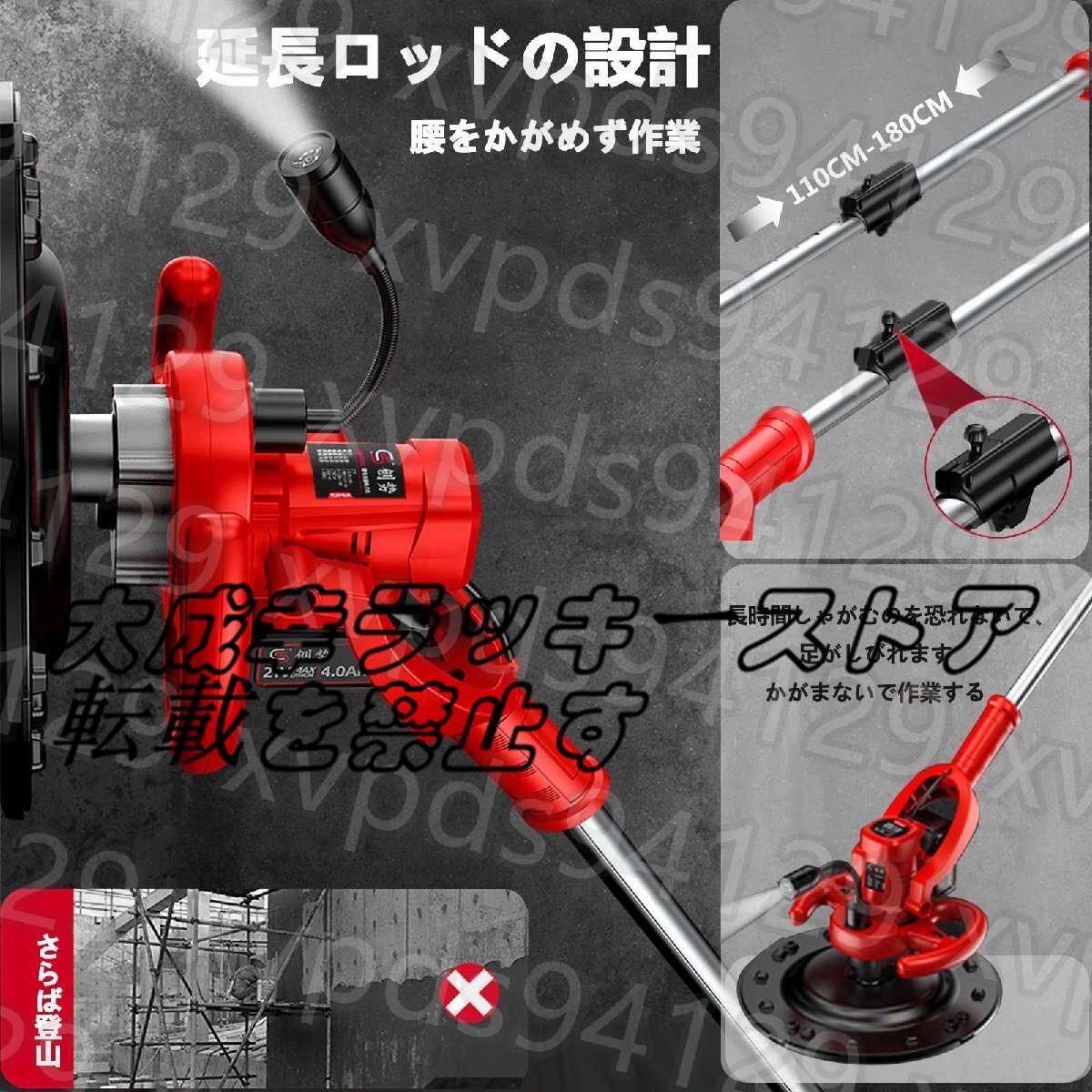 電気サンダー セメント 充電式ウォールサンダ モルタル コードレス ハンドヘルド パワートロウェル ライト付き 6段変速 延長ロッド付き