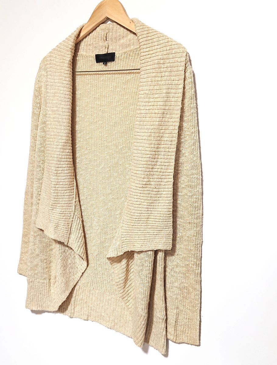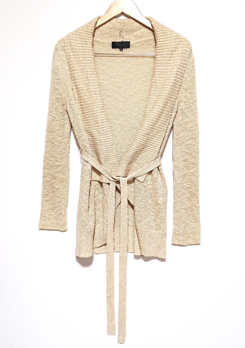 H9513gg 日本製 UNTITLED(アンタイトル) サイズ0(XS位) カーディガン ベージュ ラメ レディース ガウン ウェストリボンベルト ワールド