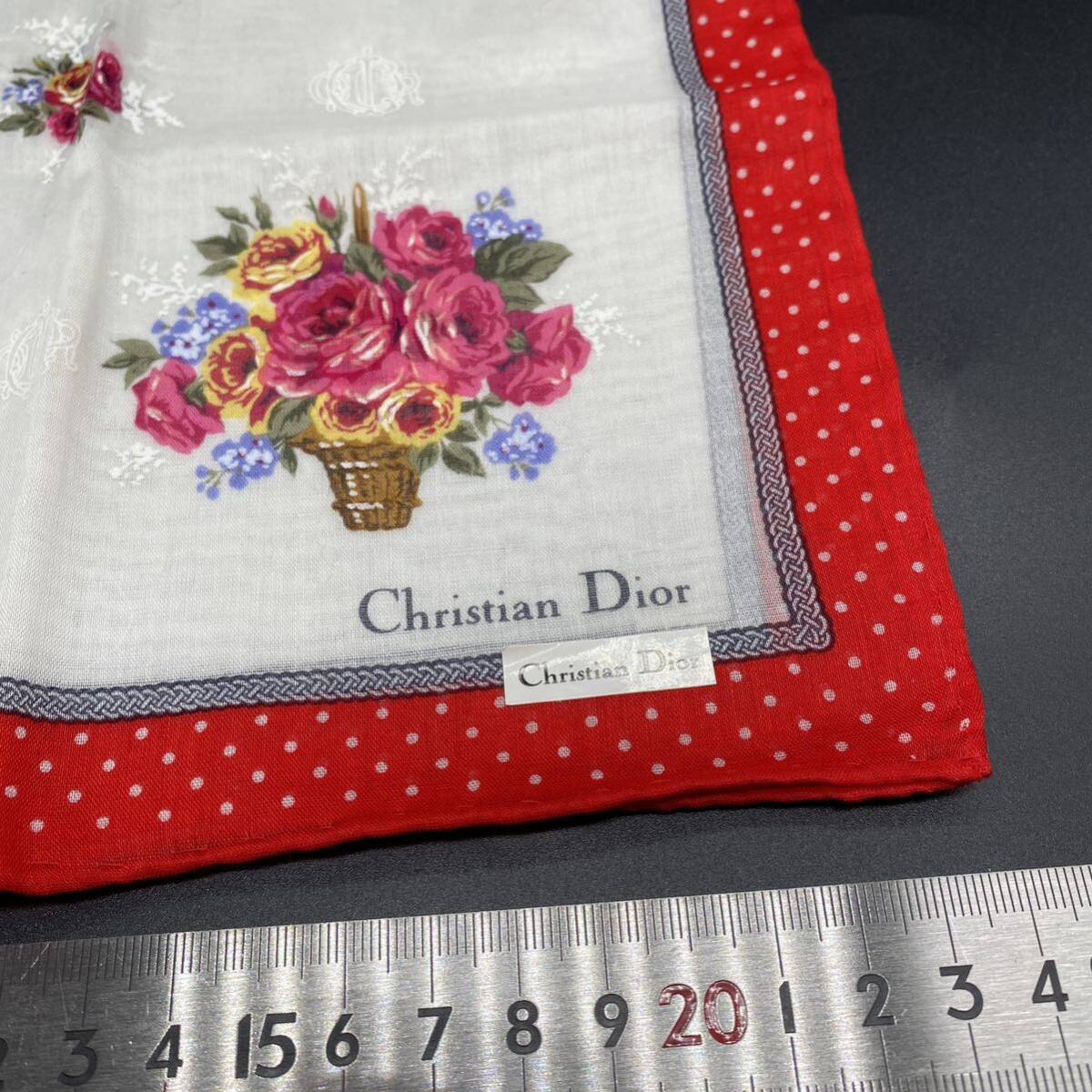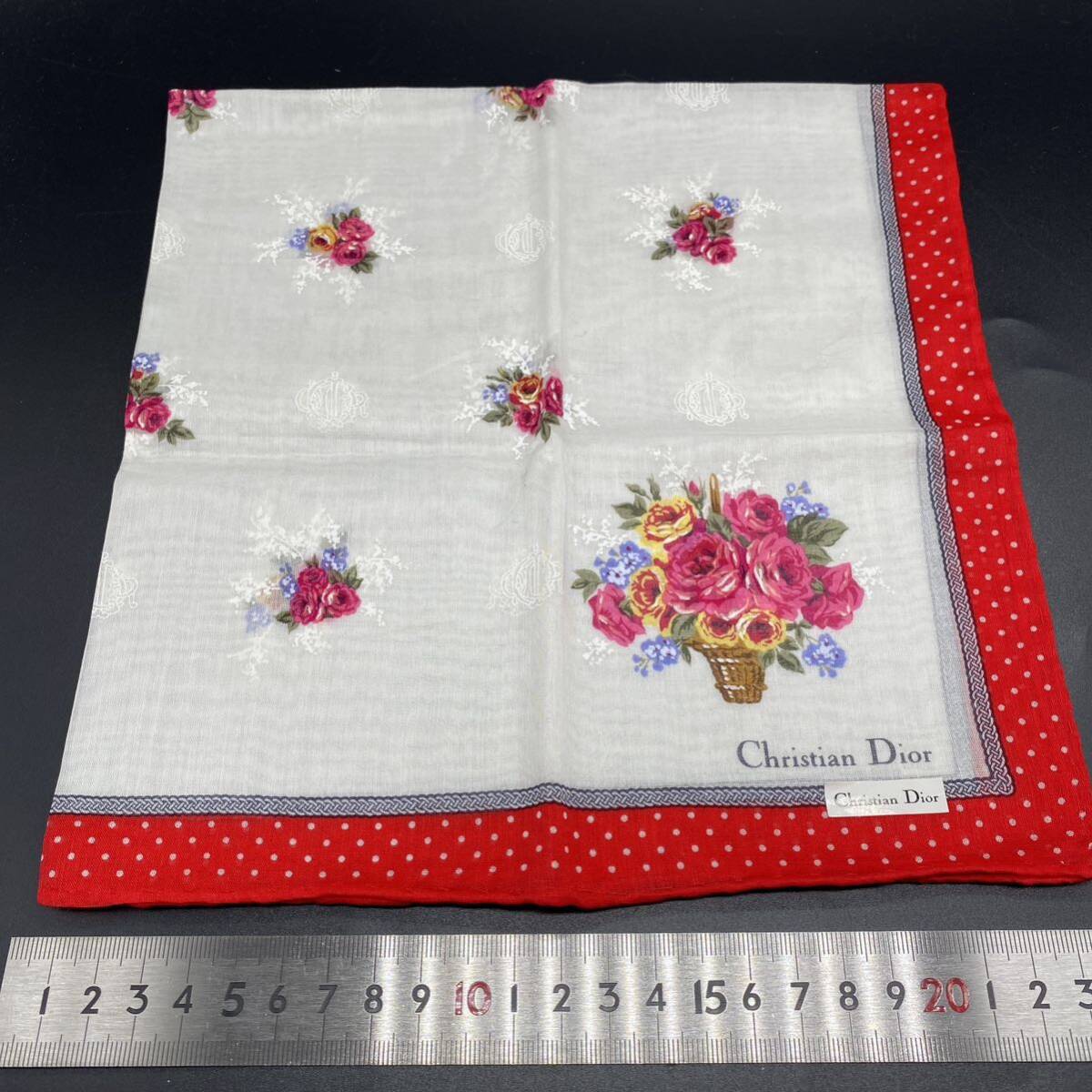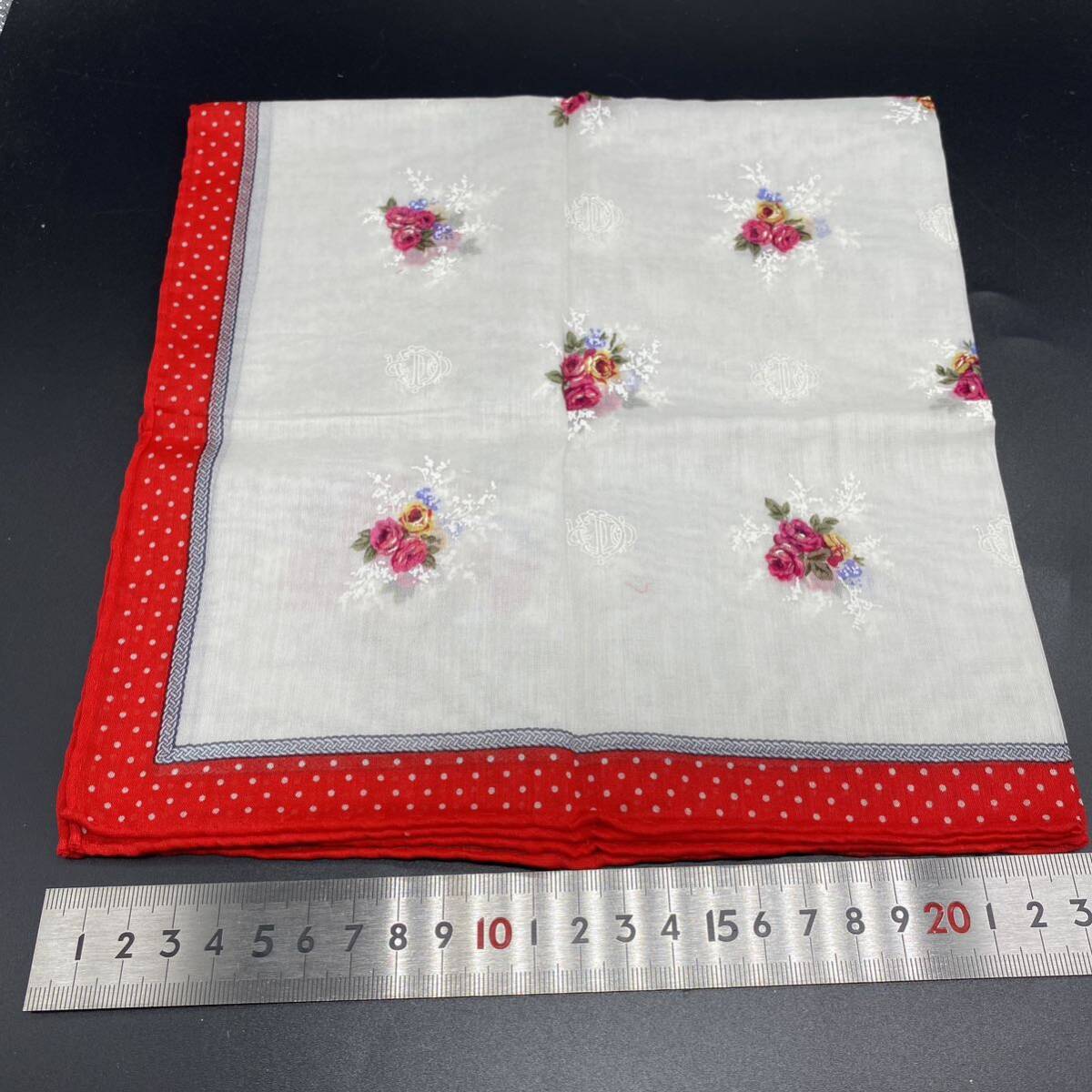 Christian Dior クリスチャンディオール ハンカチ 小花柄 ホワイト ふちレッドドット no.41