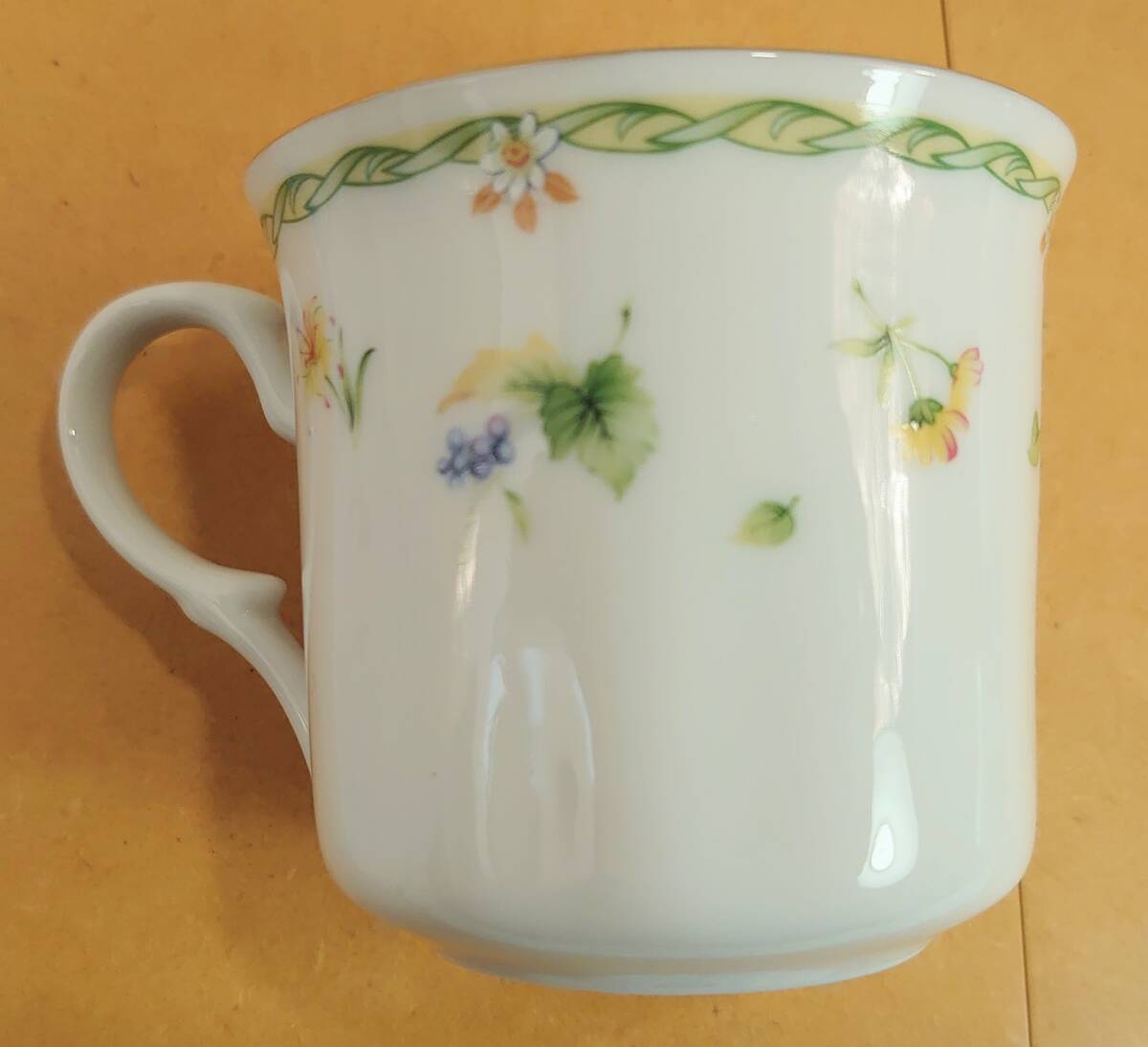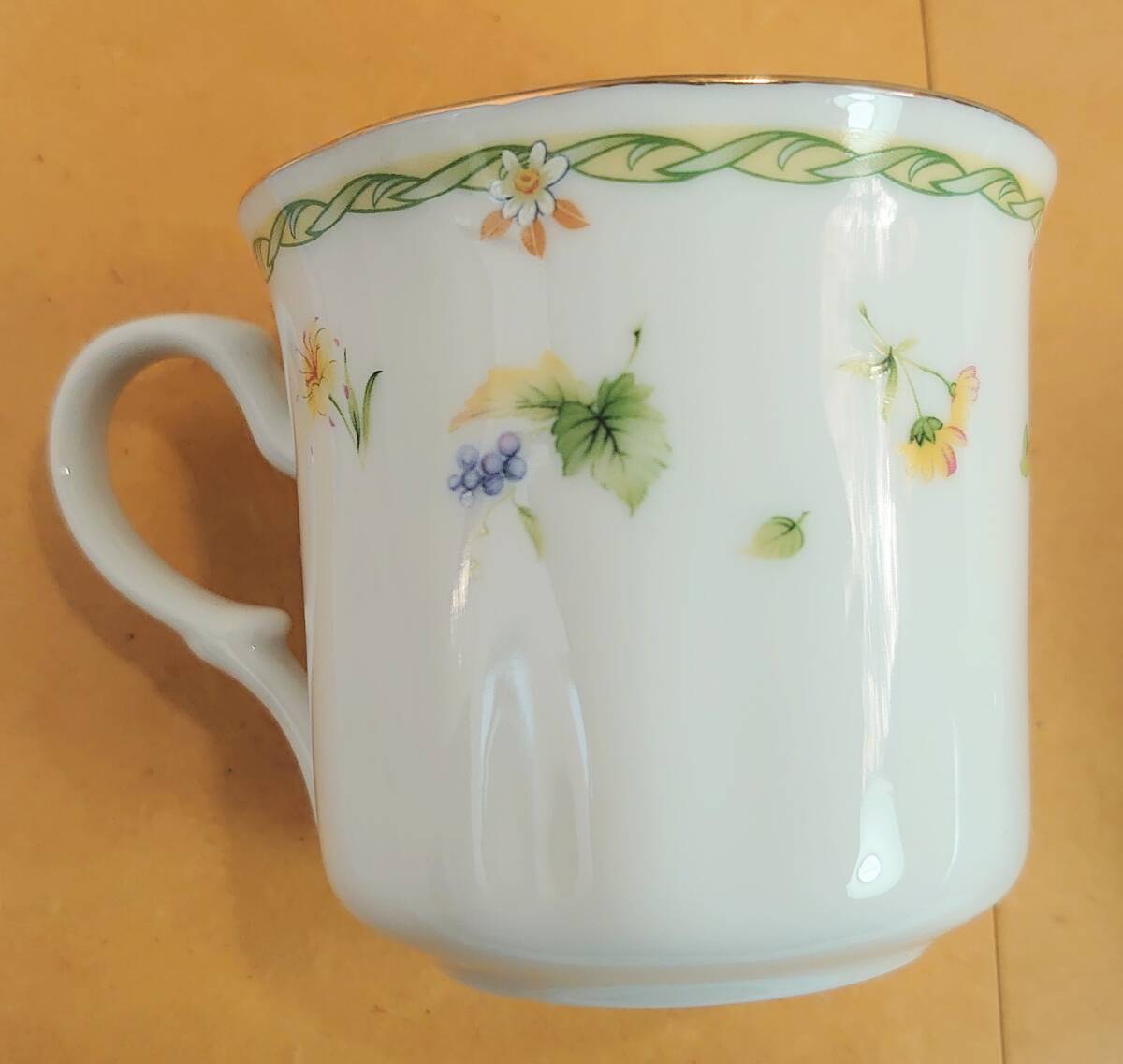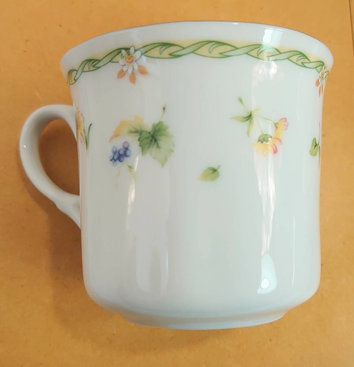 ぶどうや花にツタ等が気品あるデザインで描かれているカップです。