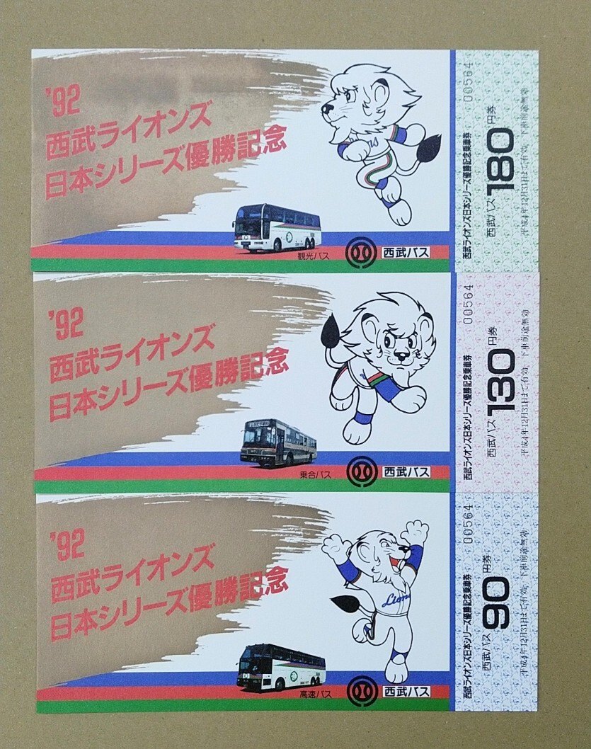 【送料無料!】西武ライオンズ 1992日本シリーズ優勝記念 西武バス乗車券 3枚