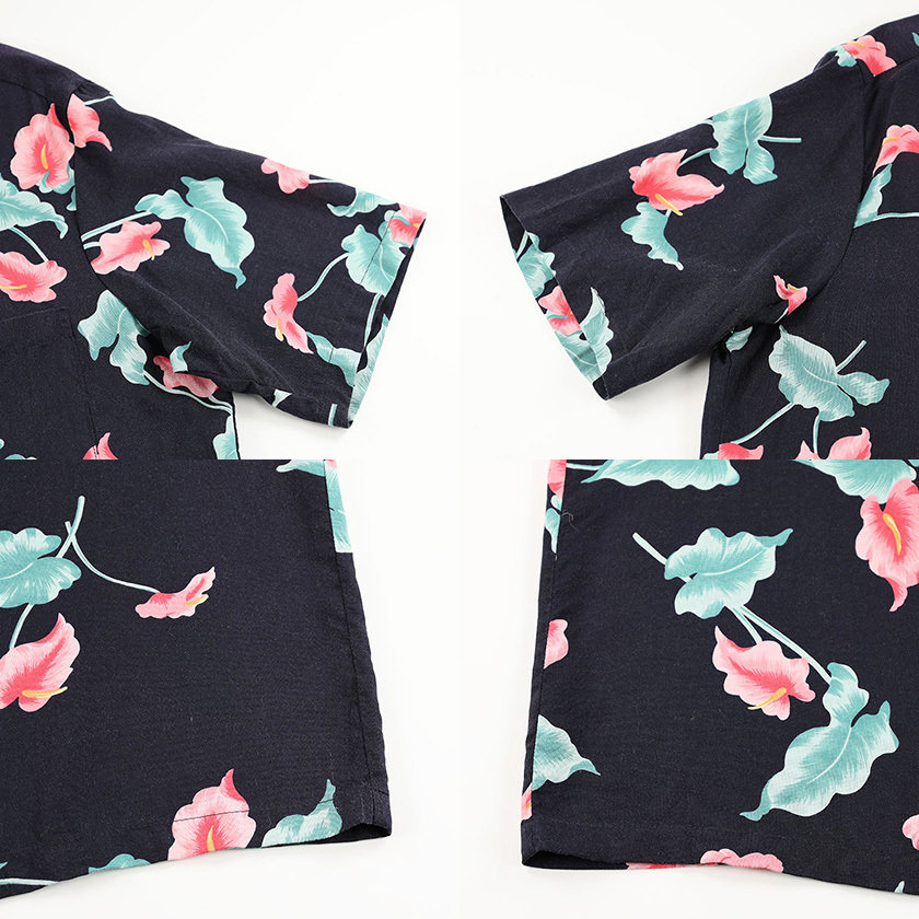 | 状態 | ランクはE 1983年に新婚旅行でハワイで購入したものです。 現地で数回着用した商品です。 その後は、クローゼットに保管していました。 アロハシャツのコレクターの方お待ちしております。 コンディションを重視なさる方はご購入をお控えくださいませ。 中古品にご理解ある方の落札をお待ちしております。 実寸サイズ】襟羽長さ:6.0cm 着丈:75cm 身幅:58cm 肩幅:48cm 袖丈:26cm ※平置きで採寸。 |