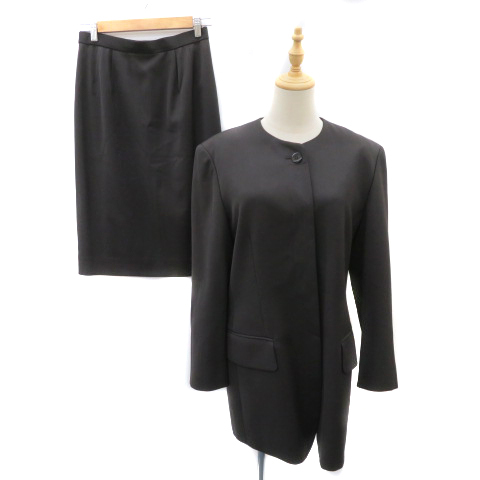 コルディア フォーマル セットアップ 上下 ノーカラージャケット タイトスカート スリット 無地 44 XXL チャコールグレー レディース