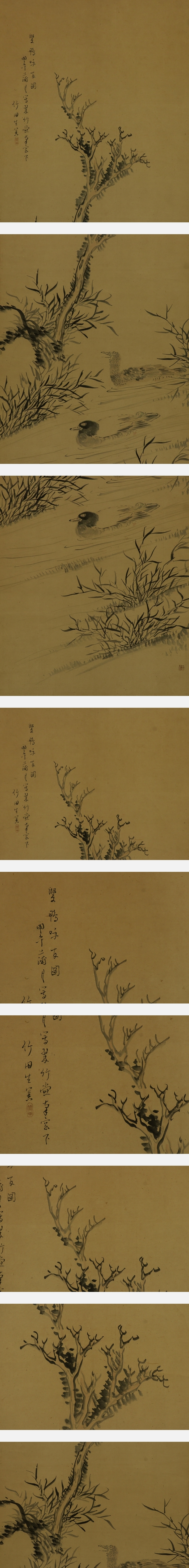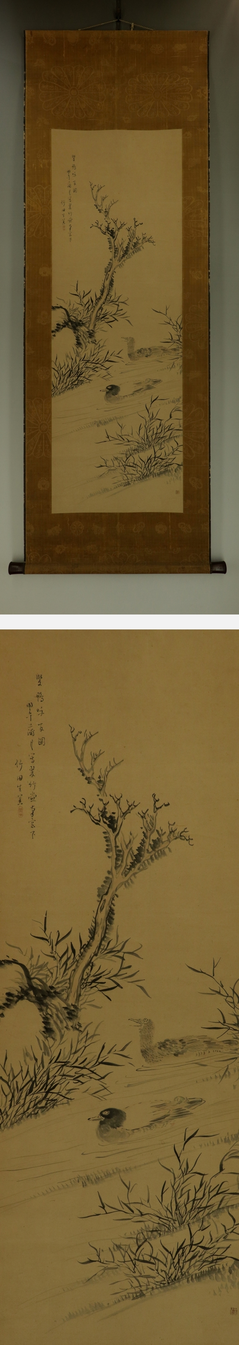 | №2406064【模写】田能村竹田【双鴨呼友図】◆紙本◆合箱◆掛軸 | |