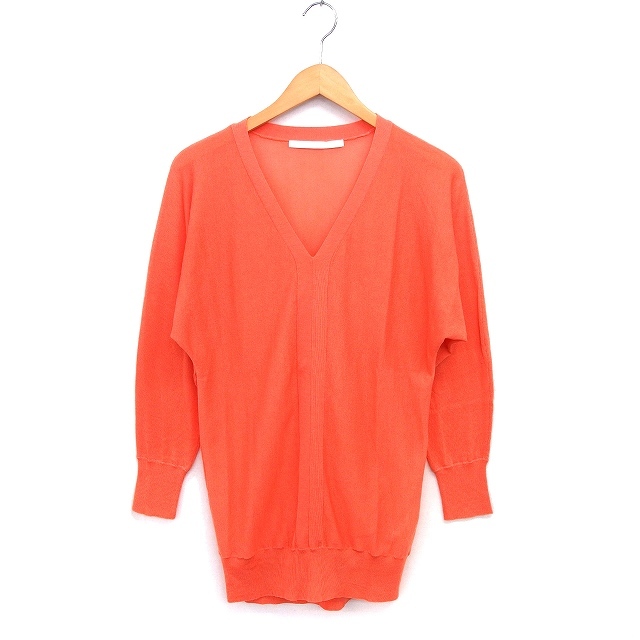 ブラック バイ マウジー BLACK by moussy ニット セーター チュニック リブ 透け感 Vネック ハイゲージ 長袖 F オレンジ /NT20 レディース