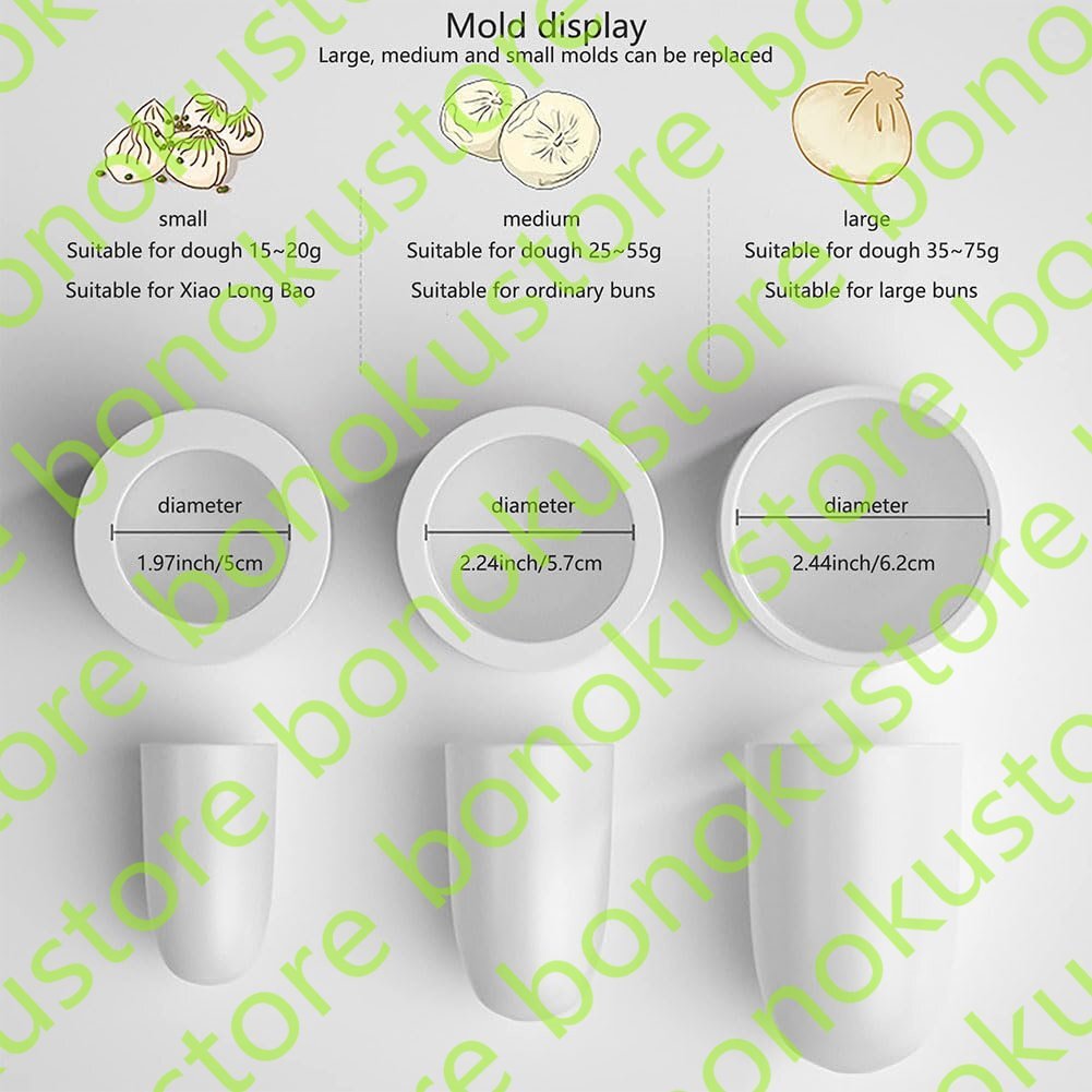 【3サイズの金型】手動バンズマシンには3種類のプレス金型があり、それぞれ15?25g、25?55g、35?75gの生地に適しています。直径5cm、5.7cm、6.2cmのパンを作ることができます。さまざまな種類のパンを作ることができます。
