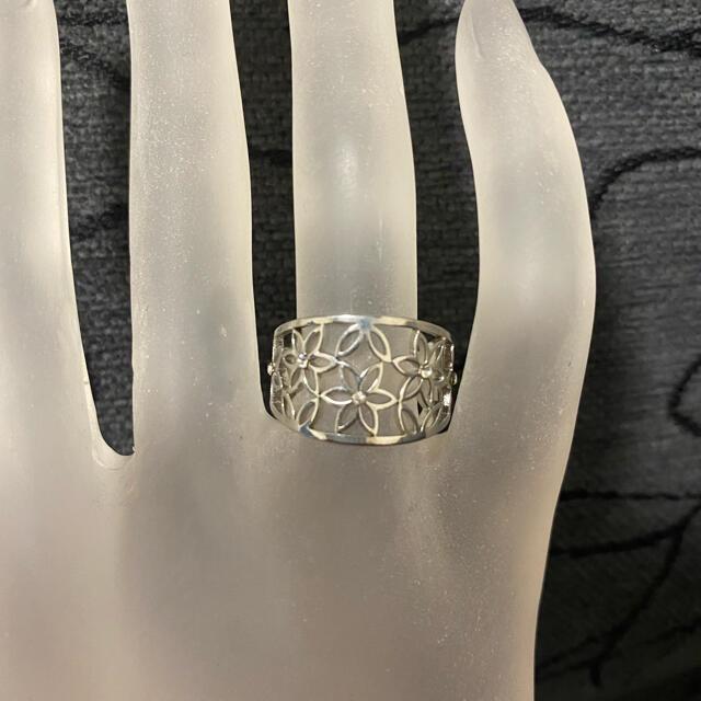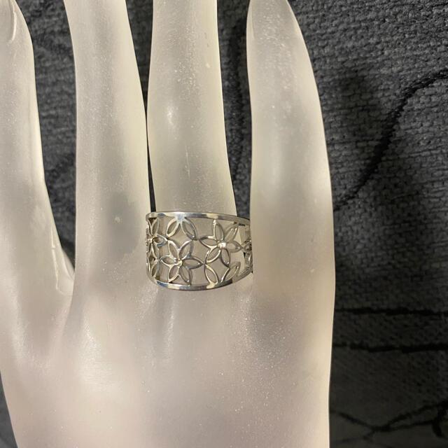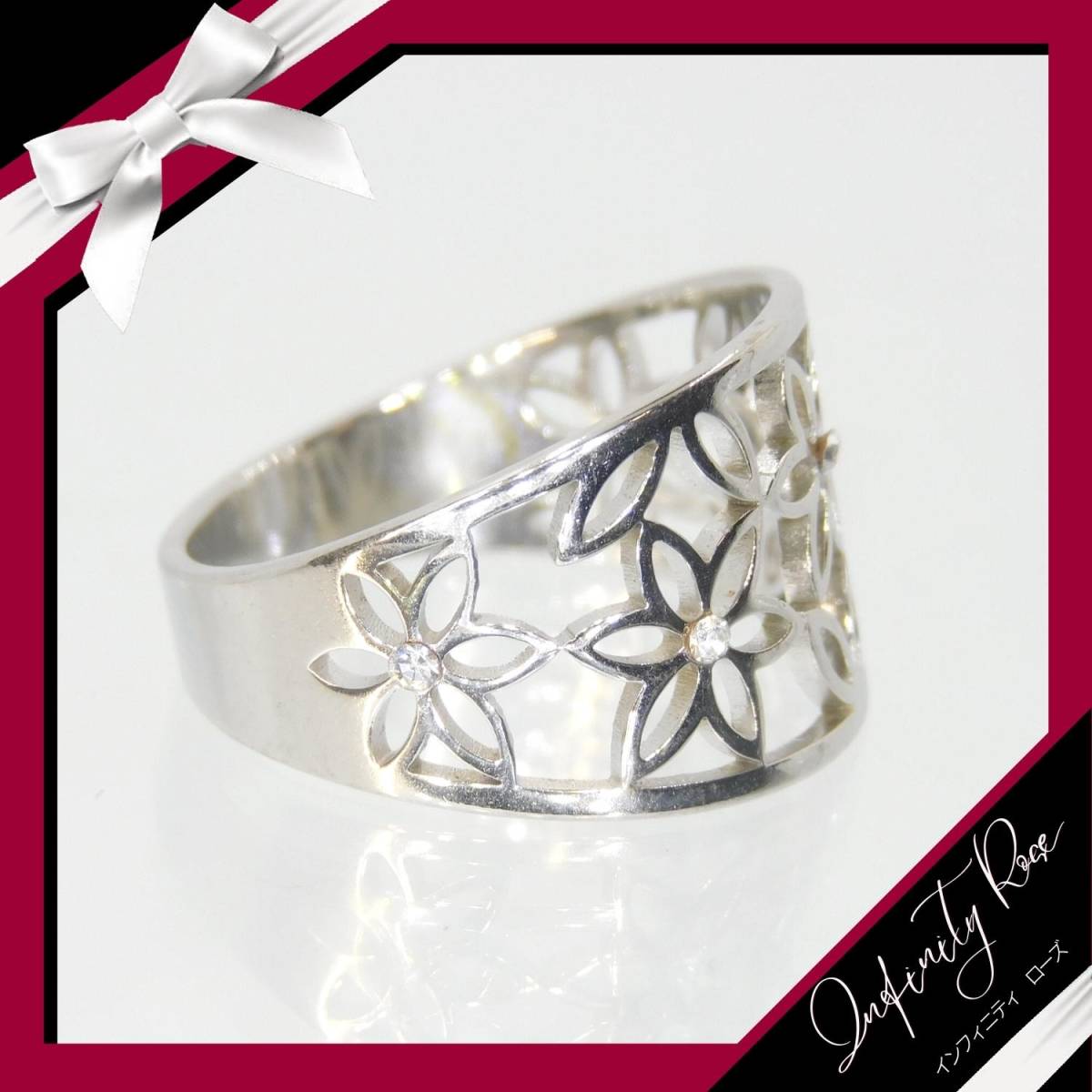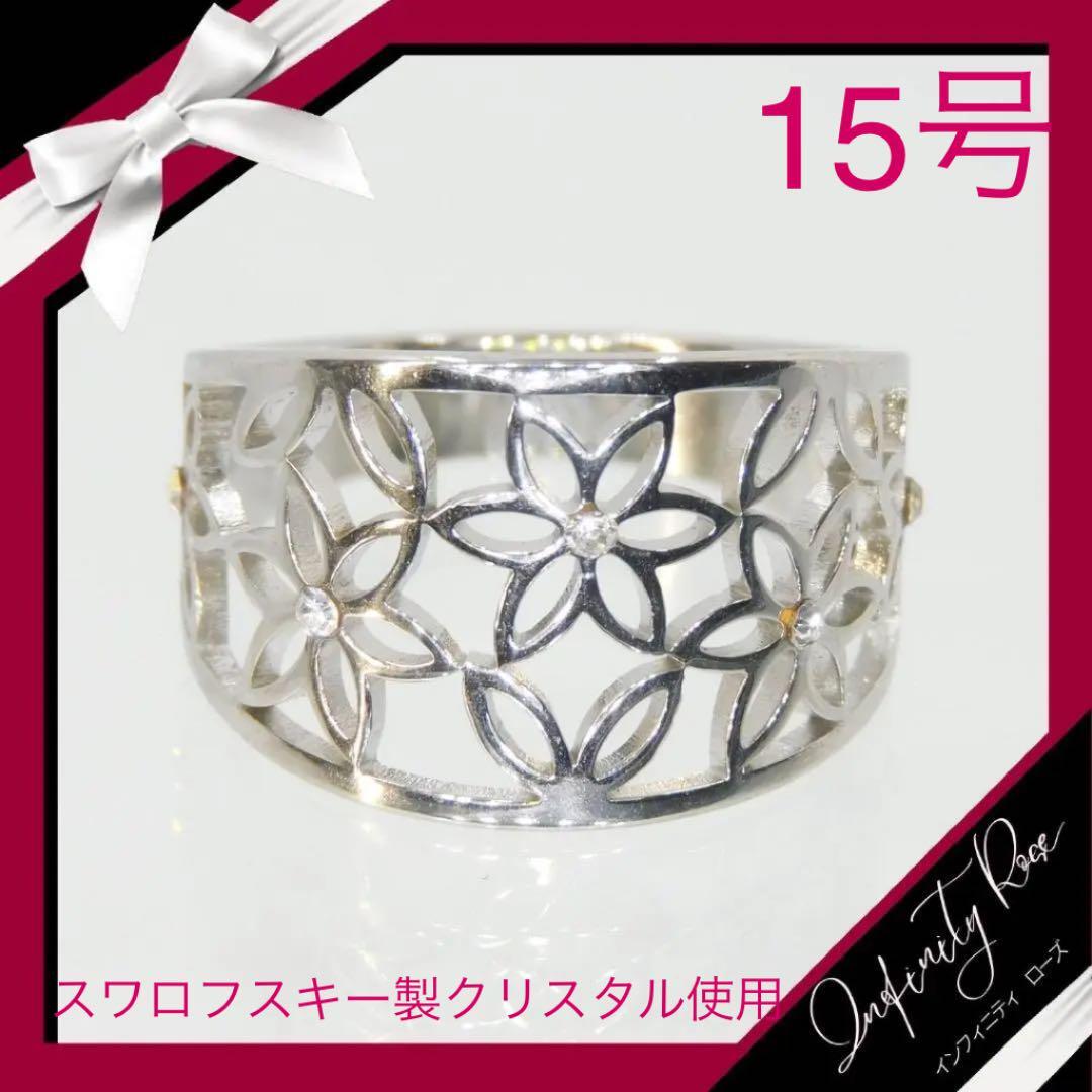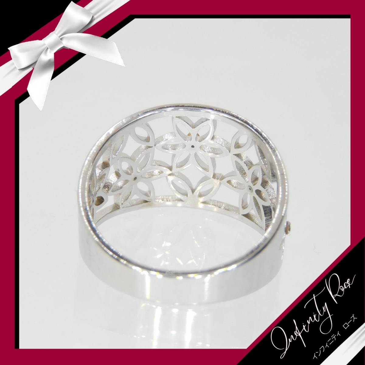 (1174)15号 シルバー繊細デザインフラワーステンレスリング 指輪