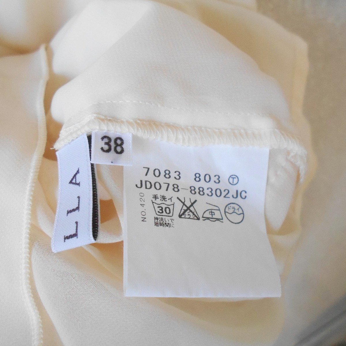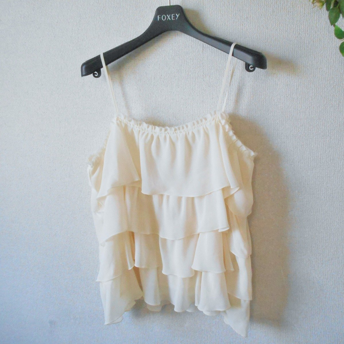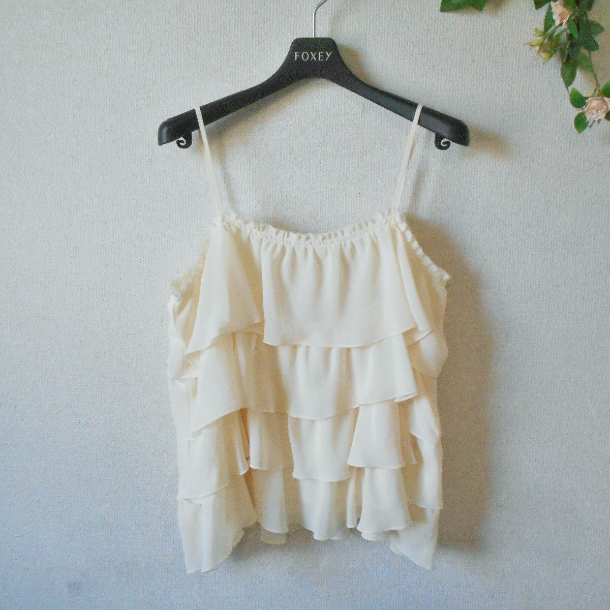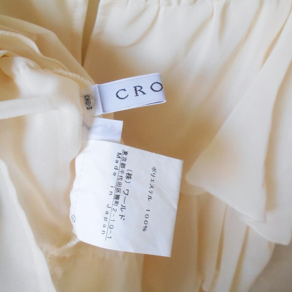 【ポイント】株)ワールド、クローラのキャミソールブラウスになります。お色は薄いクリーム色で透け感のある生地の夏向きです。
