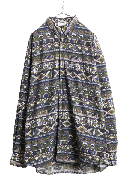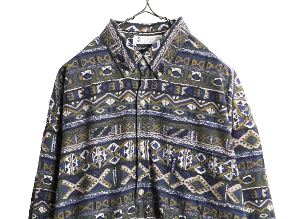 商品名 | 90s コロンビア 総柄 フランネル ボタンダウン シャツ メンズ XXL 程/ オールド Columbia 長袖シャツ ネイティブ 大きいサイズ ネルシャツ |