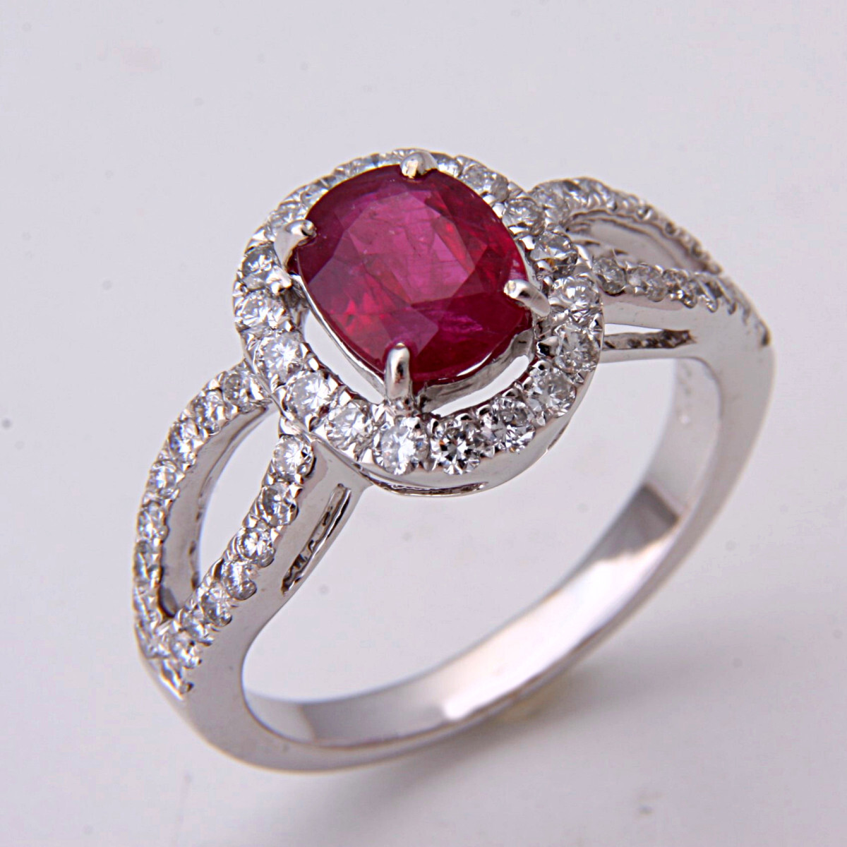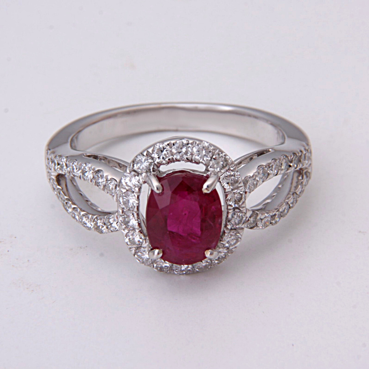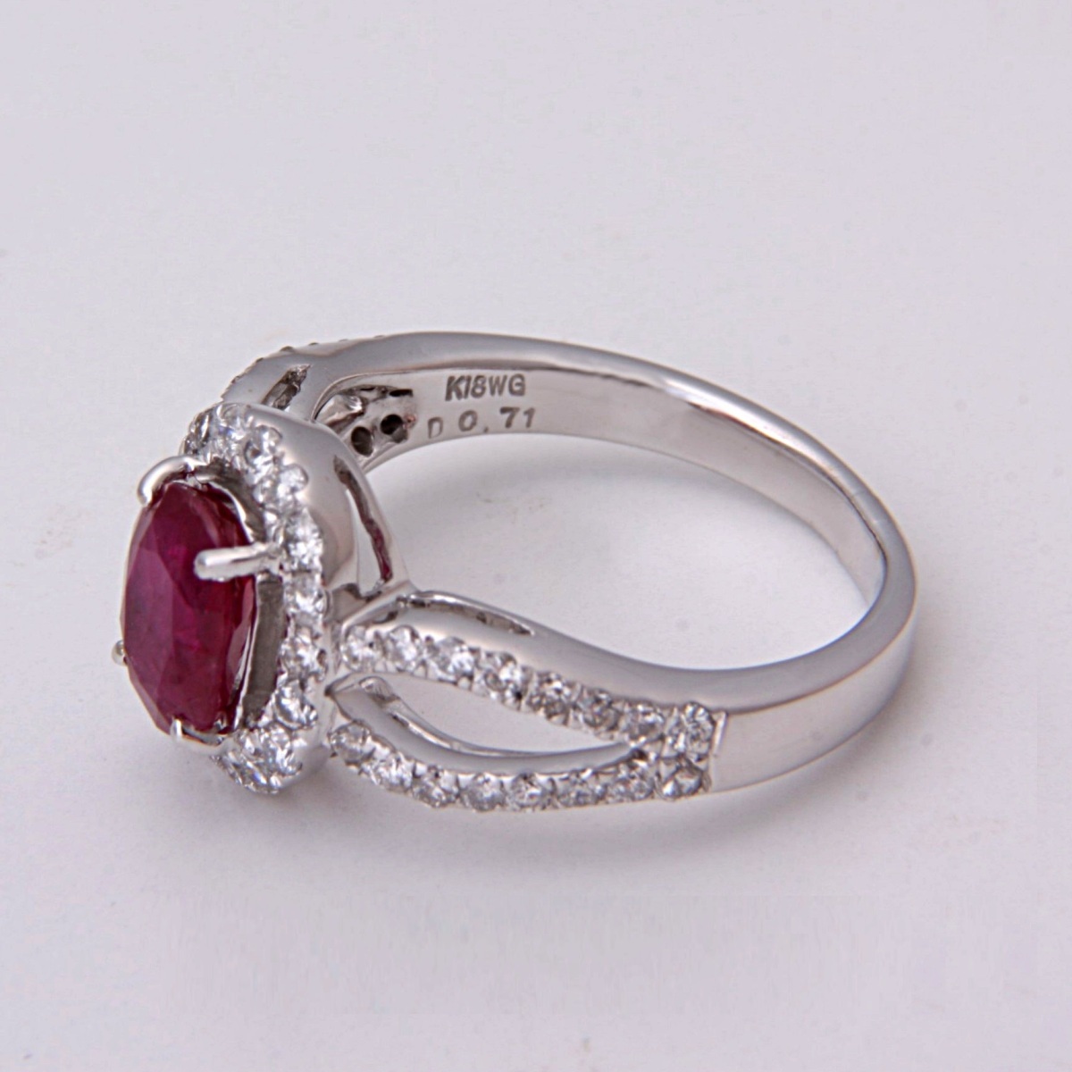 K18WGホワイトゴールド天然ルビー1.53Ct&天然ダイヤモンド0.71Ctデザインリング指輪13号です。