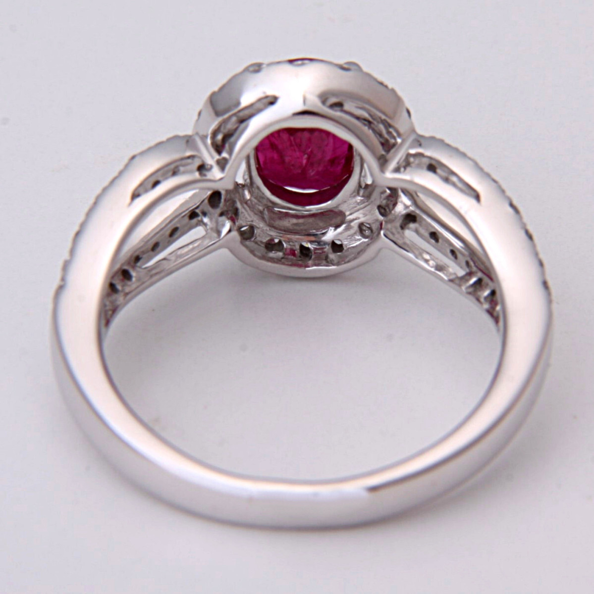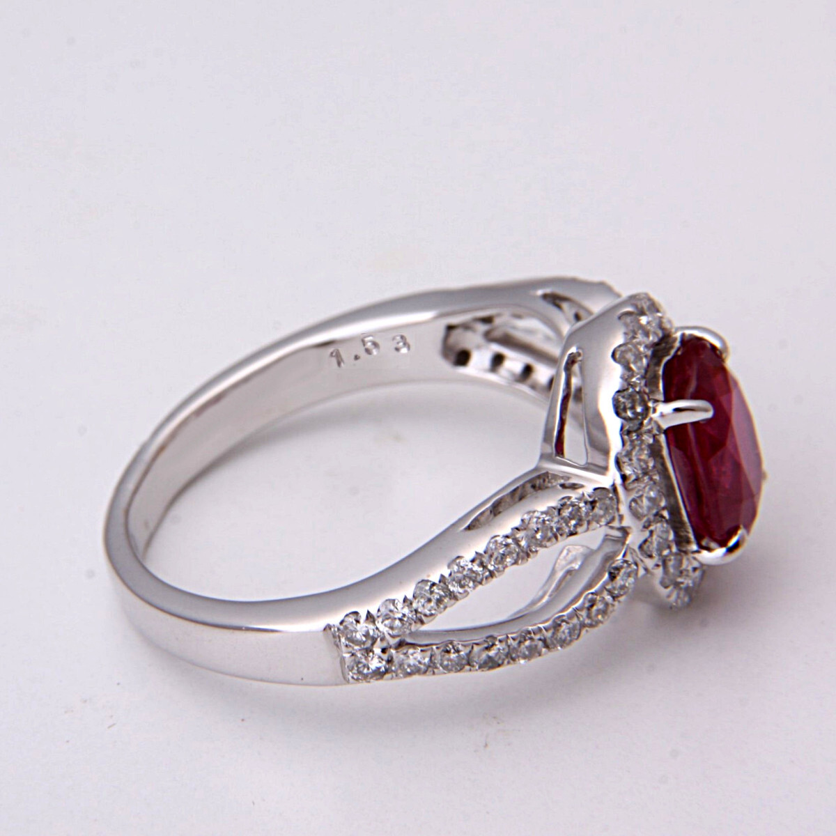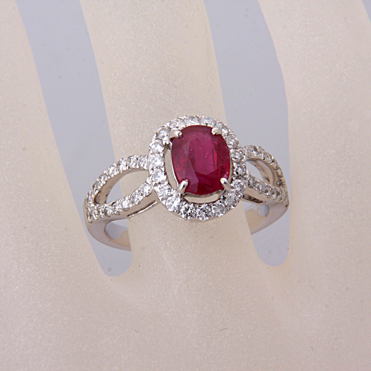 K18WGホワイトゴールド天然ルビー1.53Ct&天然ダイヤモンド0.71Ctデザインリング指輪13号です。