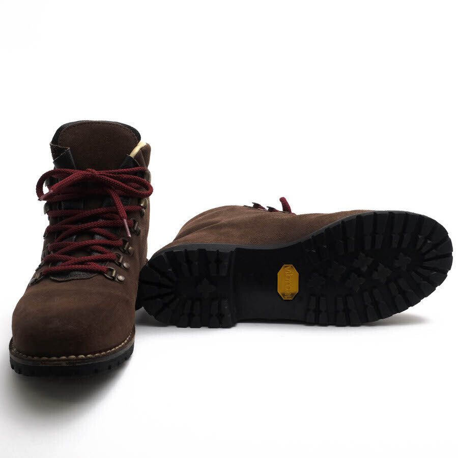 イタリア流の洗練されたデザインで仕上げられたマウンテンブーツ。マウンテンブーツ特有のボリューム感が特徴で、伝統的な製法で作ったシンプルな構造。履き口には厚手のクッションが入っており、長時間の使用でも快適な履き心地を提供します。アウトソールにはグリップ力が高く頑強なビブラム社製のタンクソールを使用しており、キャンプや軽登山などのアウトドアシーンでの使用に最適です。機能性とデザインのバランスが絶妙に調和しており、アウトドア活動はもちろん、日常使いにも適しています。 |