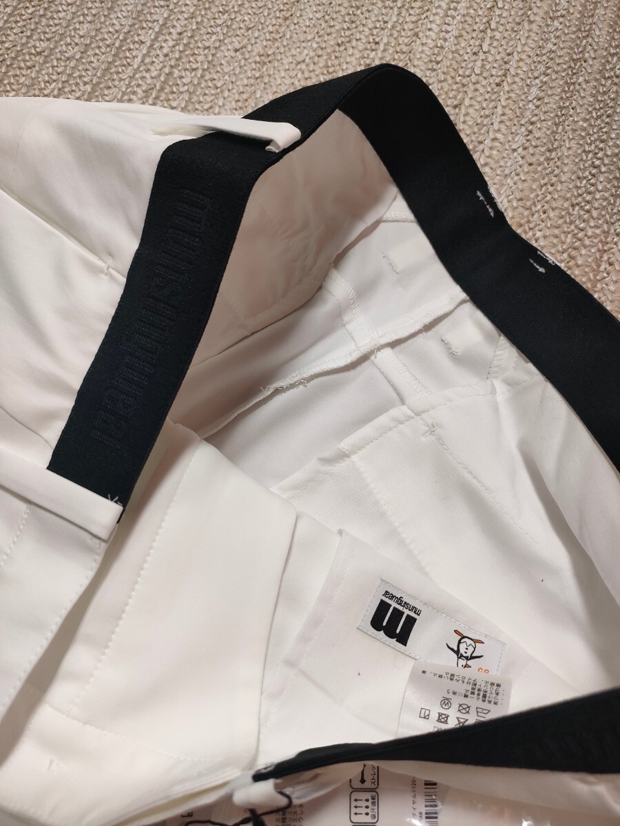 ●通常の本体部分のストレッチ機能だけでなく、ウエストゴムによりウエスト部分の伸縮もありとても穿きやすい一本です。ゴム部分はマンシングウェアのロゴが入ります。後ろ側はエンボイデザインのシリーズがスタイリッシュでとても格好良いです。