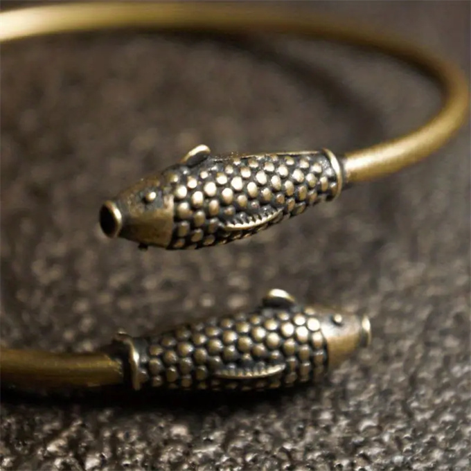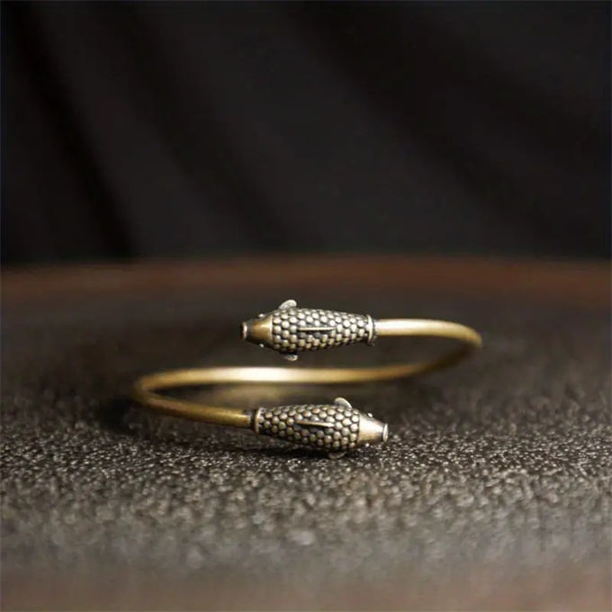 銅製アジャスタブルラッキーブレスレット、ダブルフィッシュ付き、