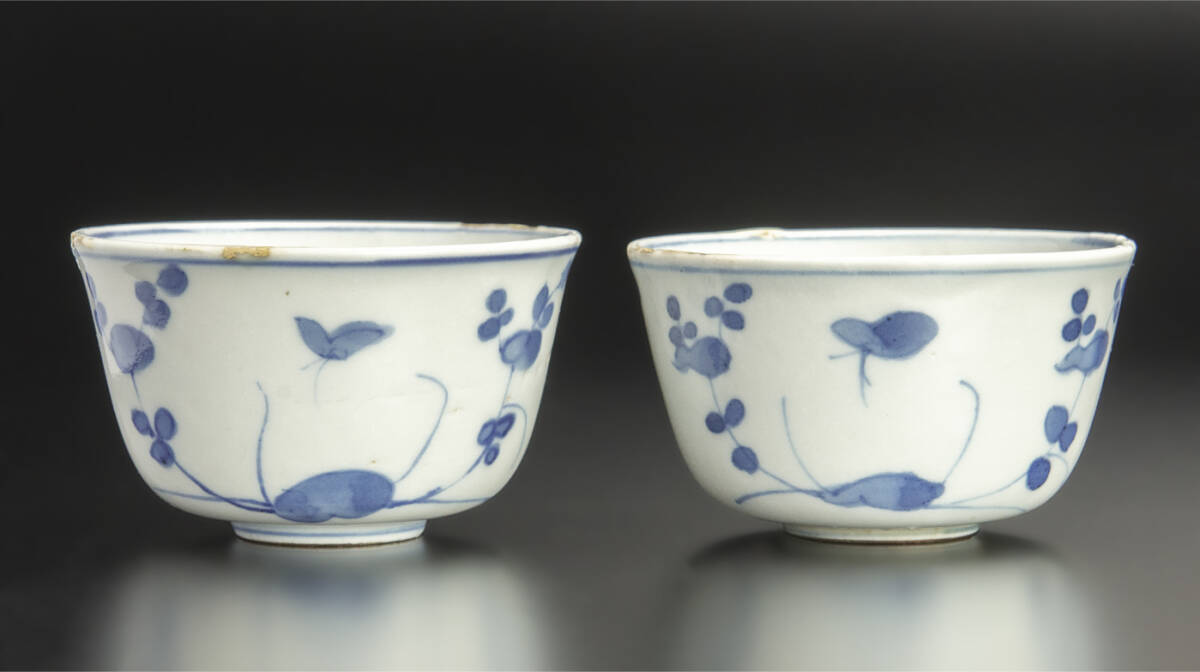 清 青花花蝶紋杯 2客 煎茶道具 中国 古美術