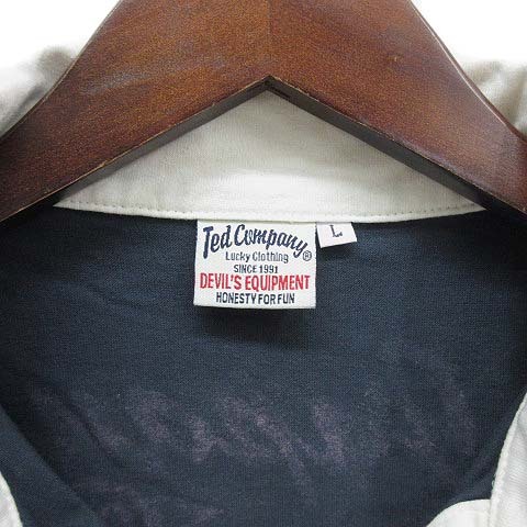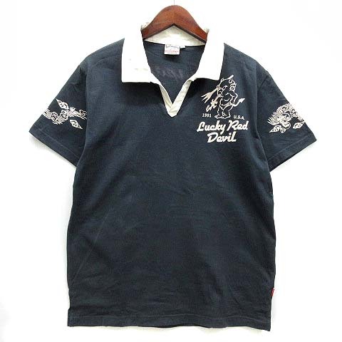 テッドマン TED MAN 龍と鬼 スキッパー ポロシャツ 半袖 両面 抜染 ネイビー 紺 L TDSKP-03 メンズ