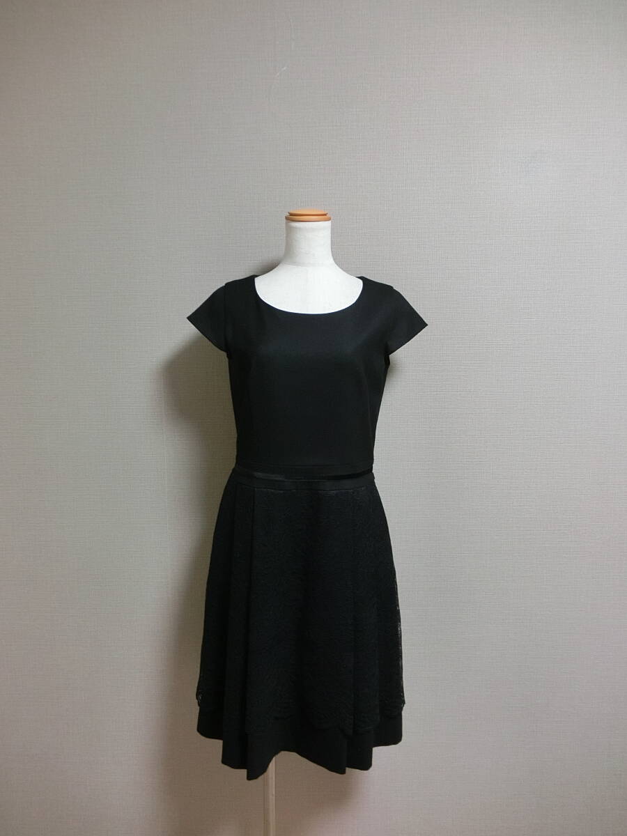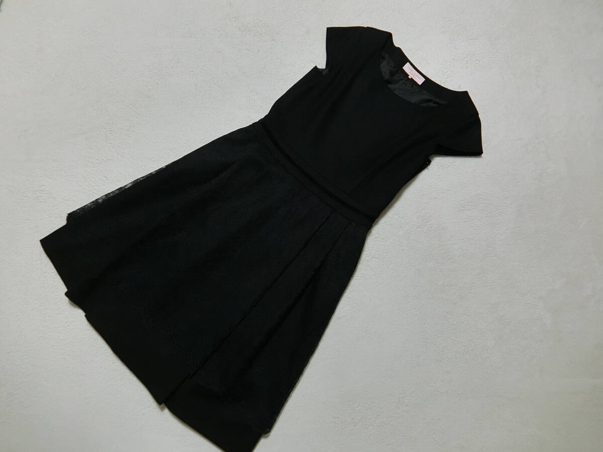 美品 LAURA ASHLEY ローラアシュレイ 清楚 レース使い ストレッチ ワンピース ブラック | |