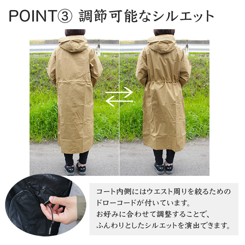 ・ウエスト周りを絞るドローコードを使用する事でスタイリッシュばシルエットに。