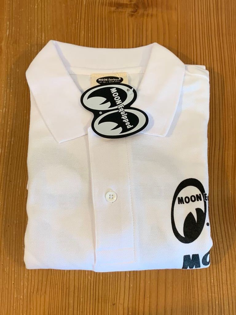 MOON Equipped ポロシャツ Lサイズ mooneyes ムーンアイズ ホワイト white 白 送料込み ムーン イクイップド ブラック 文字 筆記体