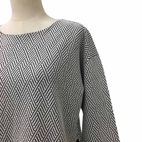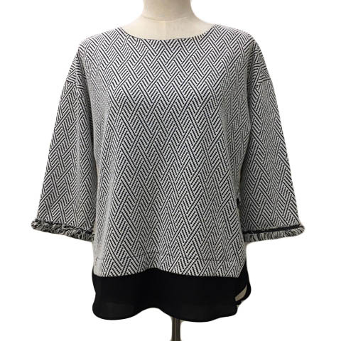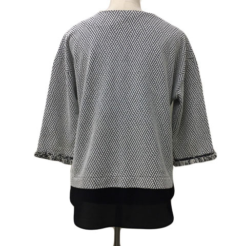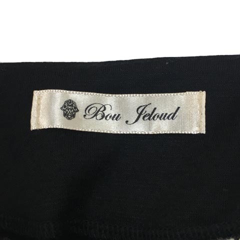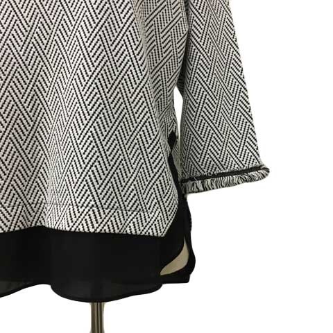 ブージュルード カットソー ニット プルオーバー ラウンドネック 総柄 レイヤード フリンジ 七分袖 FREE 黒 白 ブラック ホワイト