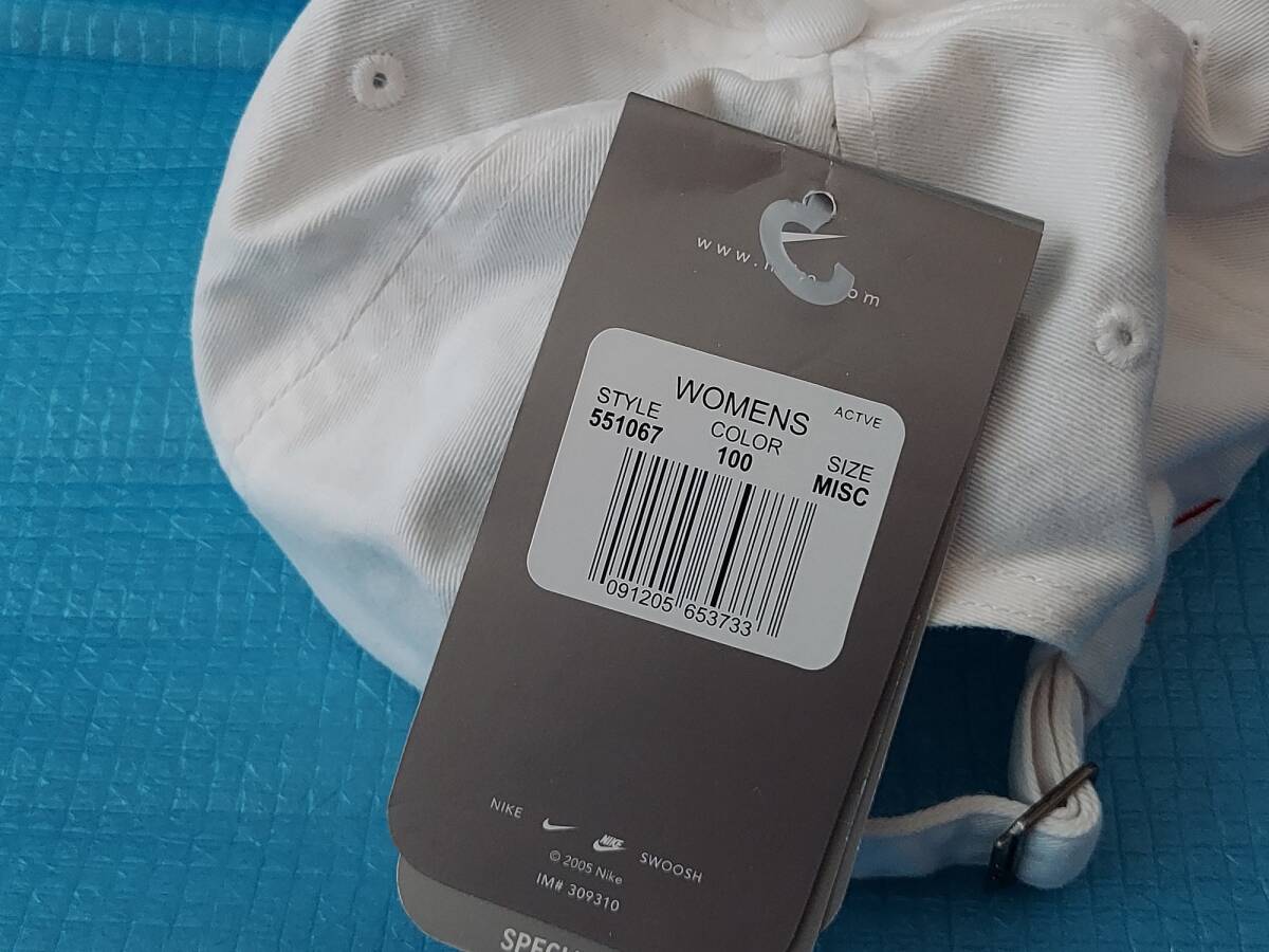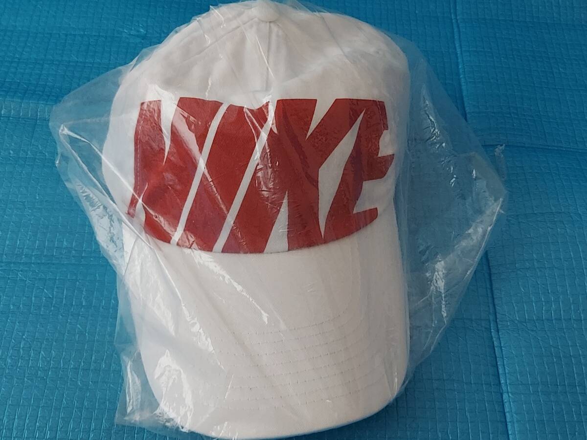 ビンテージ ナイキ キャップ 女性用 NIKE CAP 白色 大型文字「未使用・タグ付き」です。エアークッションで丁寧に包装してお送りさせて頂きます。送料定形外で390円です。お探しの方へお譲りさせて頂きます。