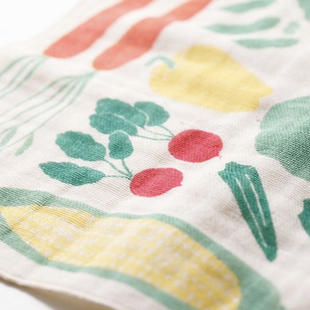 MUSUBI ORGANIC 4重 ガーゼハンカチ「やさい マルチ」 25cm M20-70024-103