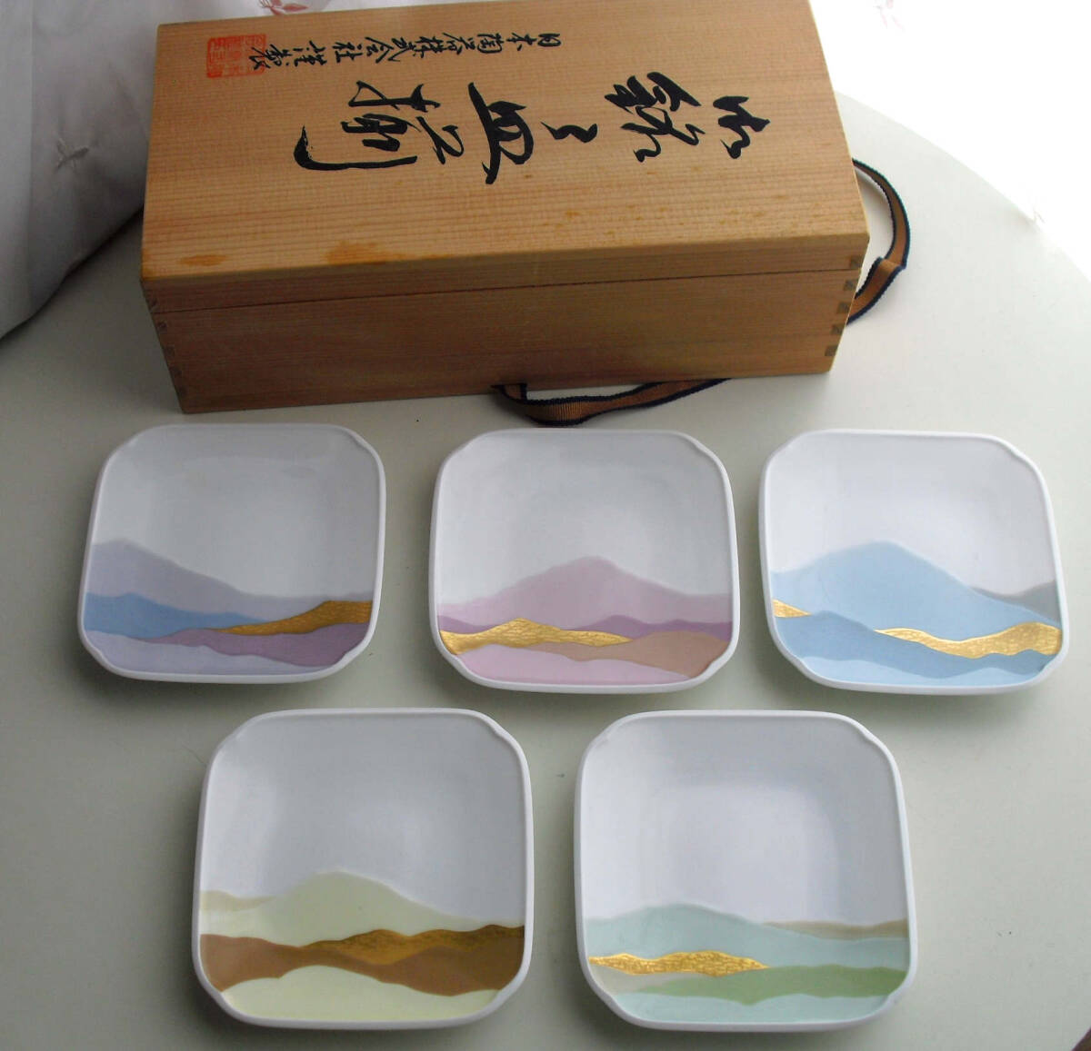ノリタケ・乃りたけ ダイヤモンドコレクション・詩郷金彩角皿5枚揃未使用