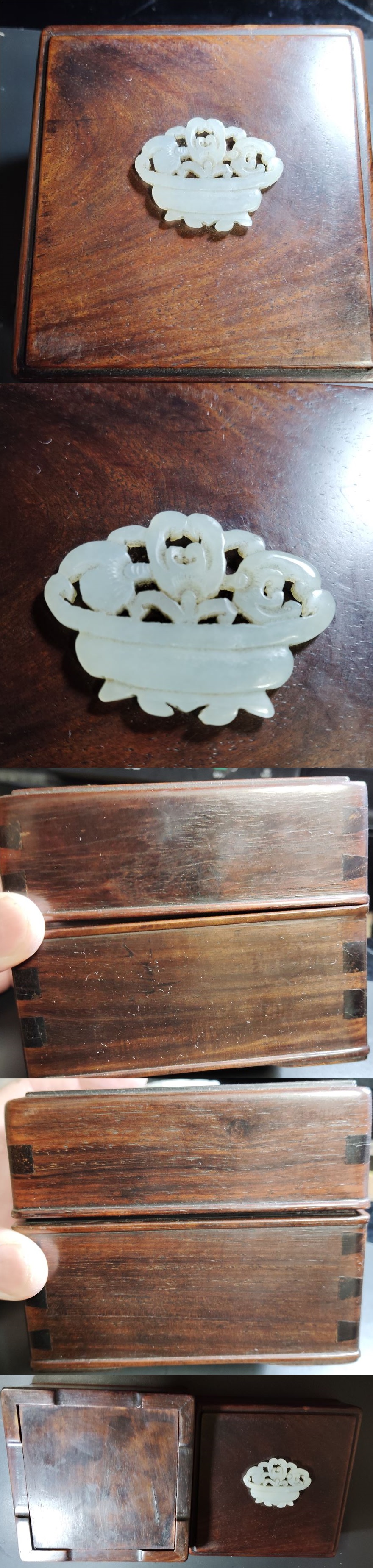 中国 清代 紫檀 箱 篏和田 白玉 花彫 唐木 鬼顔 香合 中国古玩 検索 紫檀 黄花梨
