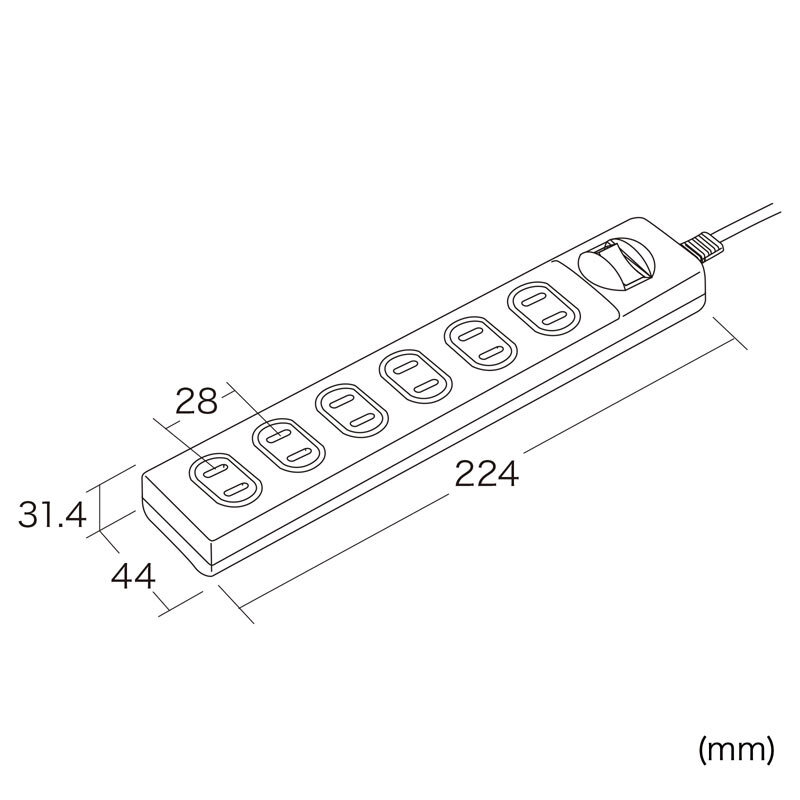 ■本体サイズ:W224×D44×H31.4mm(スイッチガードを含む)