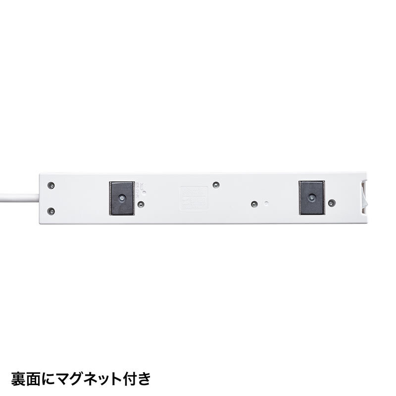 2P抜け止め7個口、集中スイッチ、マグネット、雷ガード付き。ネームタグ、専用コンセントキャップ付属の電源タップ。コード長5m。