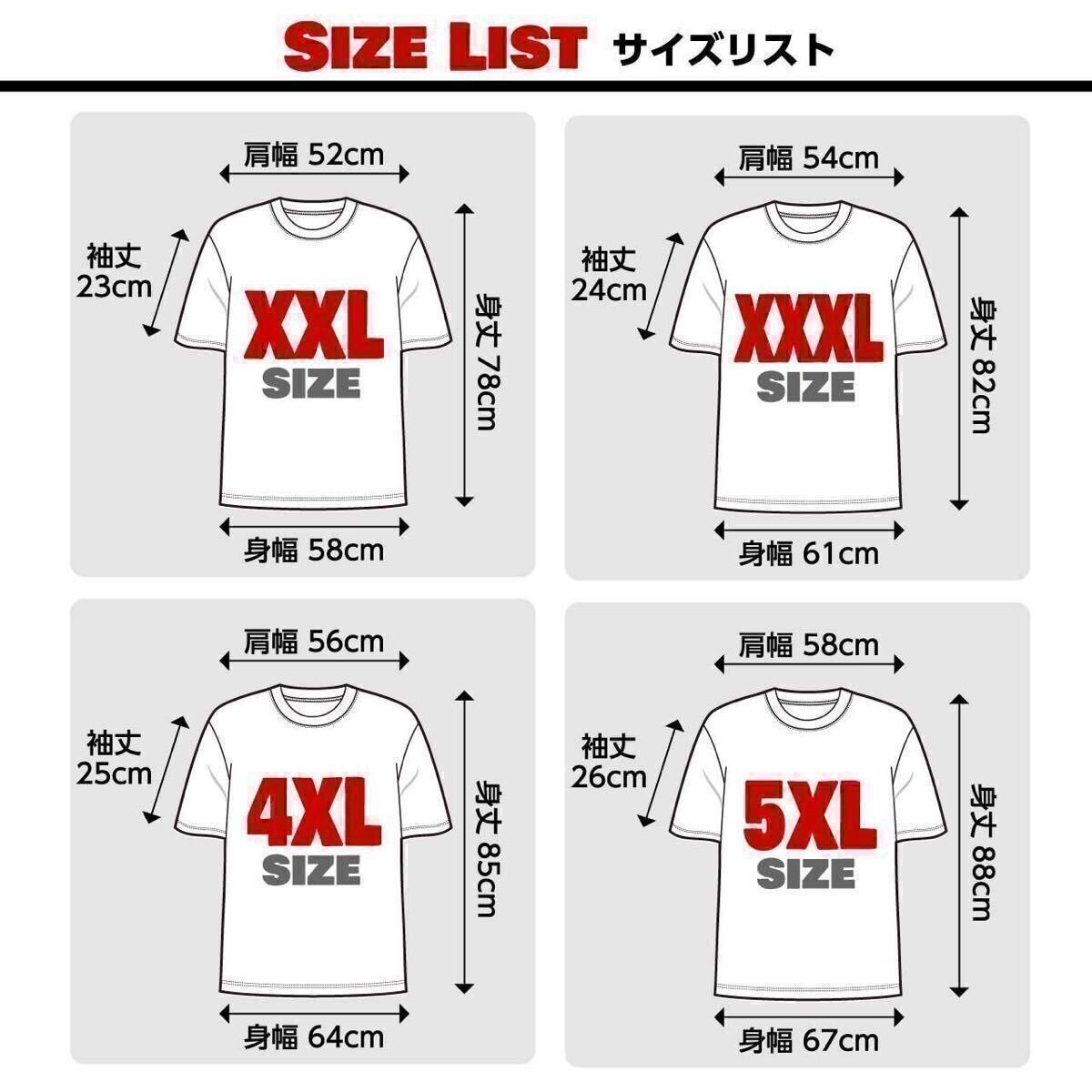 上記以外のXXL~5XLサイズの対応もさせて頂きます。