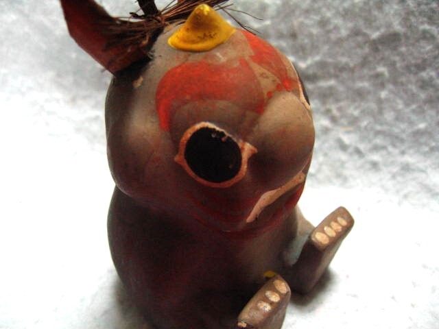 大変風合・時代感ある可愛らしい雷鬼土人形です。