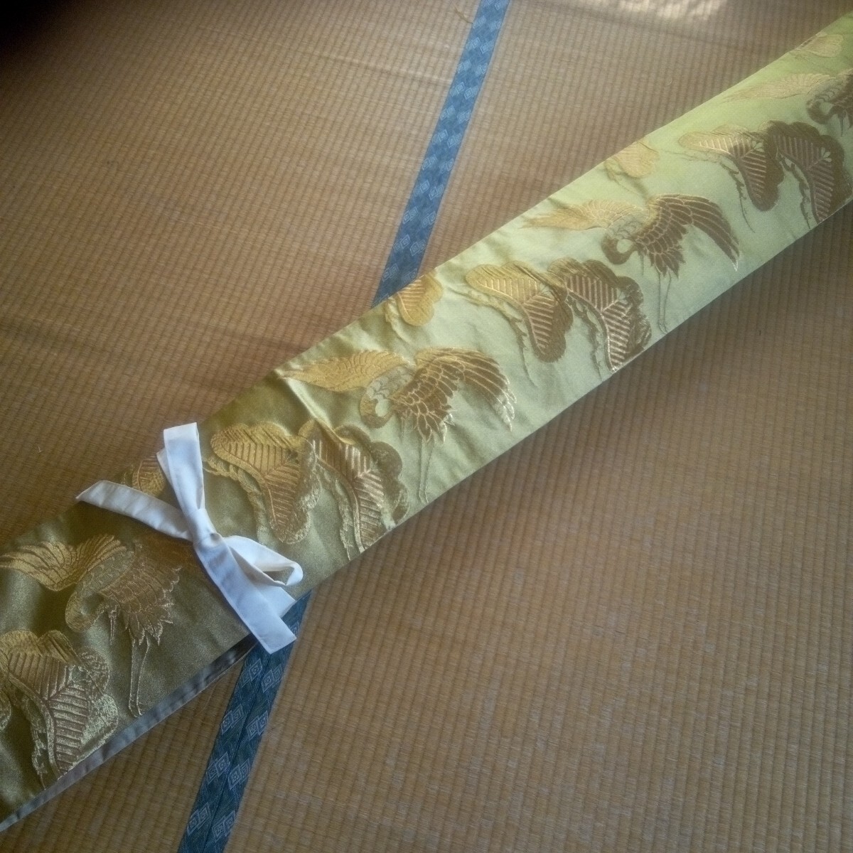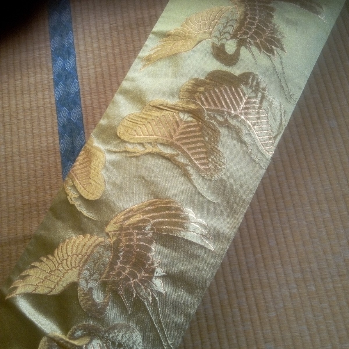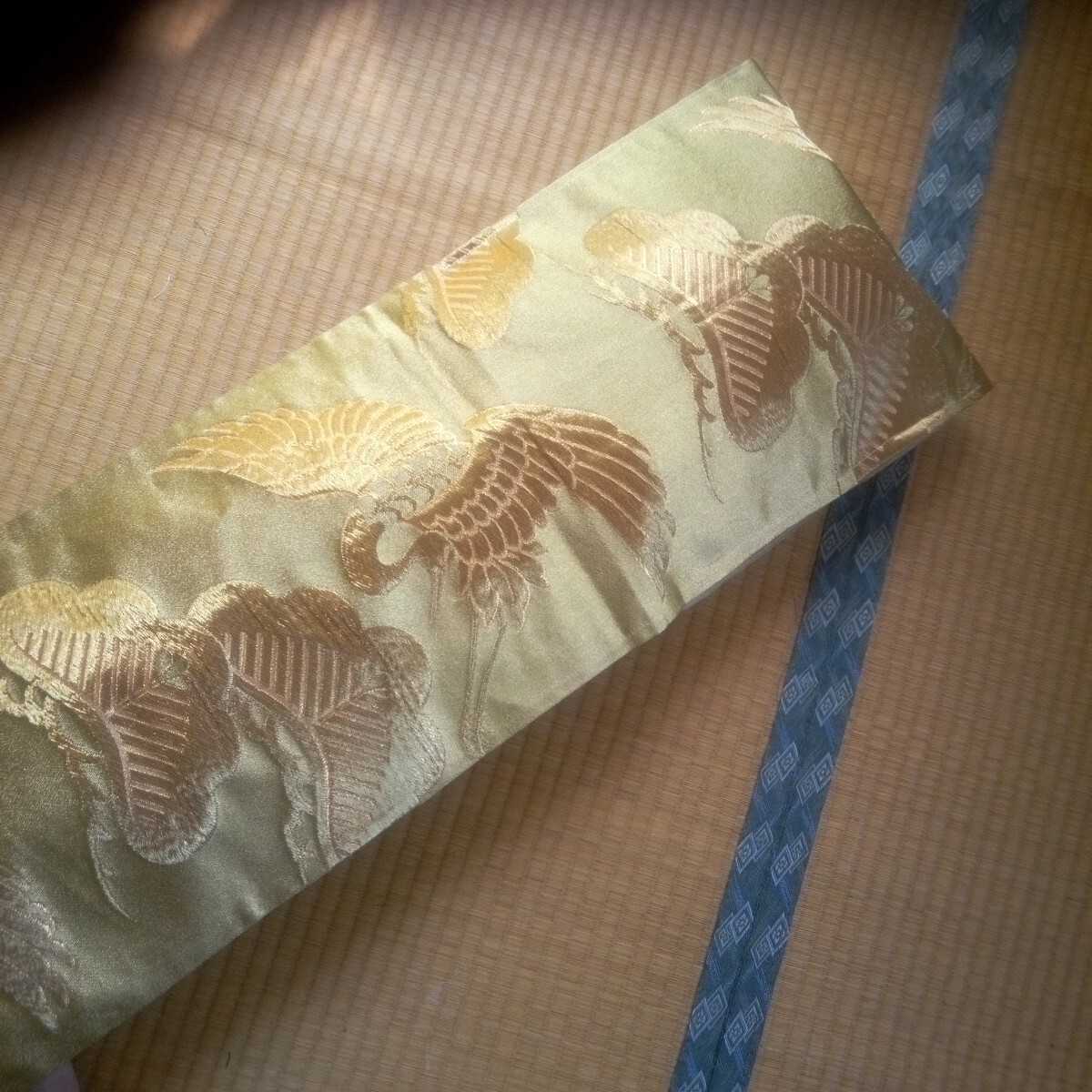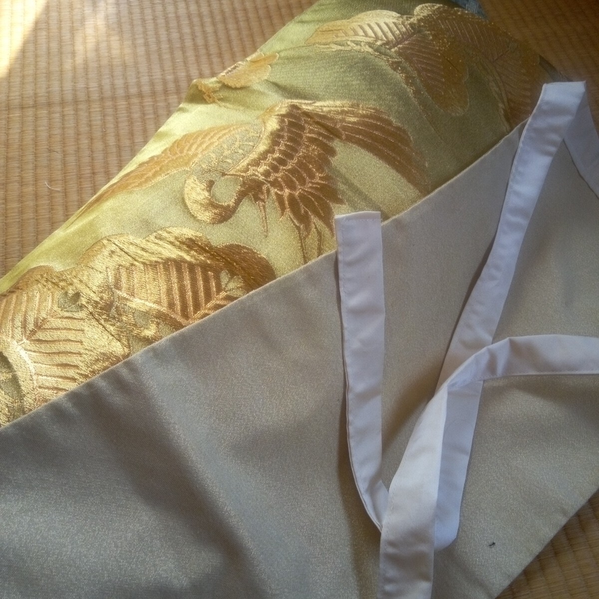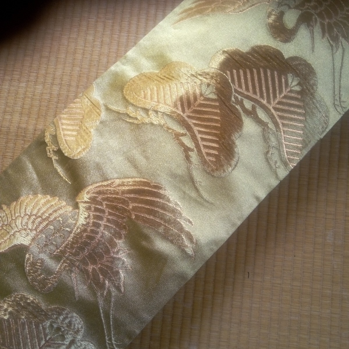 ★琴カバー 琴油単(ゆたん) 絹袋帯リメイク 金色地 松鶴柄刺繍