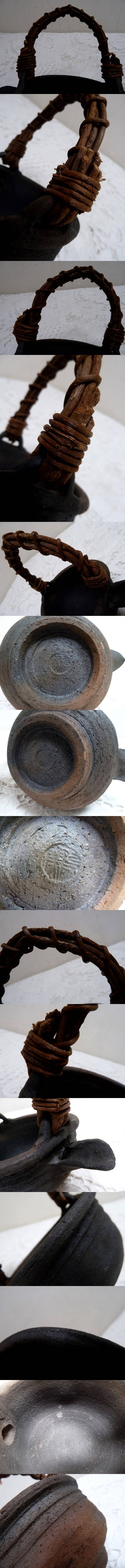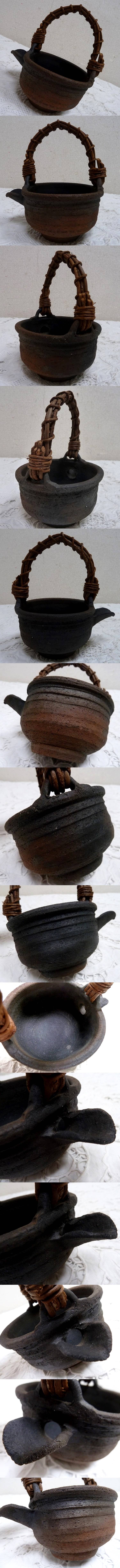 (☆BM)陶印あり 急須 水差し 花器 持ち手付き 備前焼 水盤 花瓶 置物 オブジェ 日本伝統工芸 茶道具 華道具 信楽焼