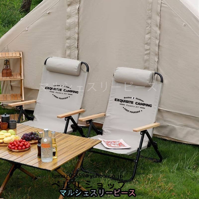 アウトドア チェア キャンプ 椅子 木目調フレーム 軽量 折りたたみ 耐荷重150kg コンパクト 携帯便利 釣り(ベージュ)
