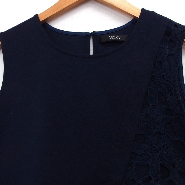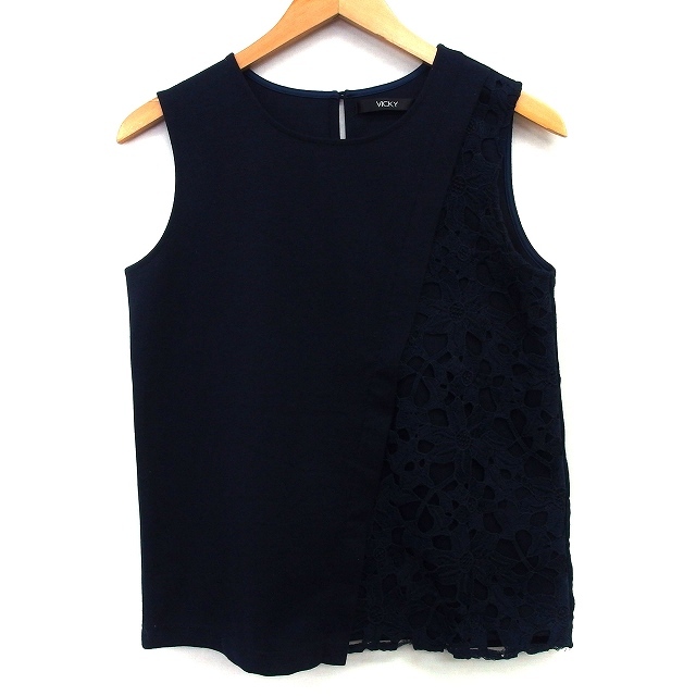 ビッキー VICKY カットソー 切替レース 花柄 ノースリーブ 丸首 2 ネイビー 紺 /HT7 レディース