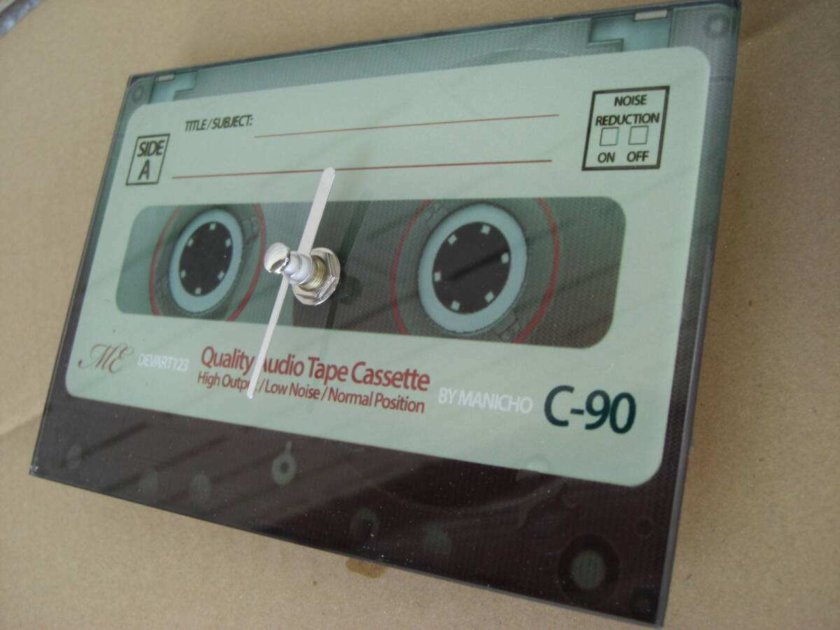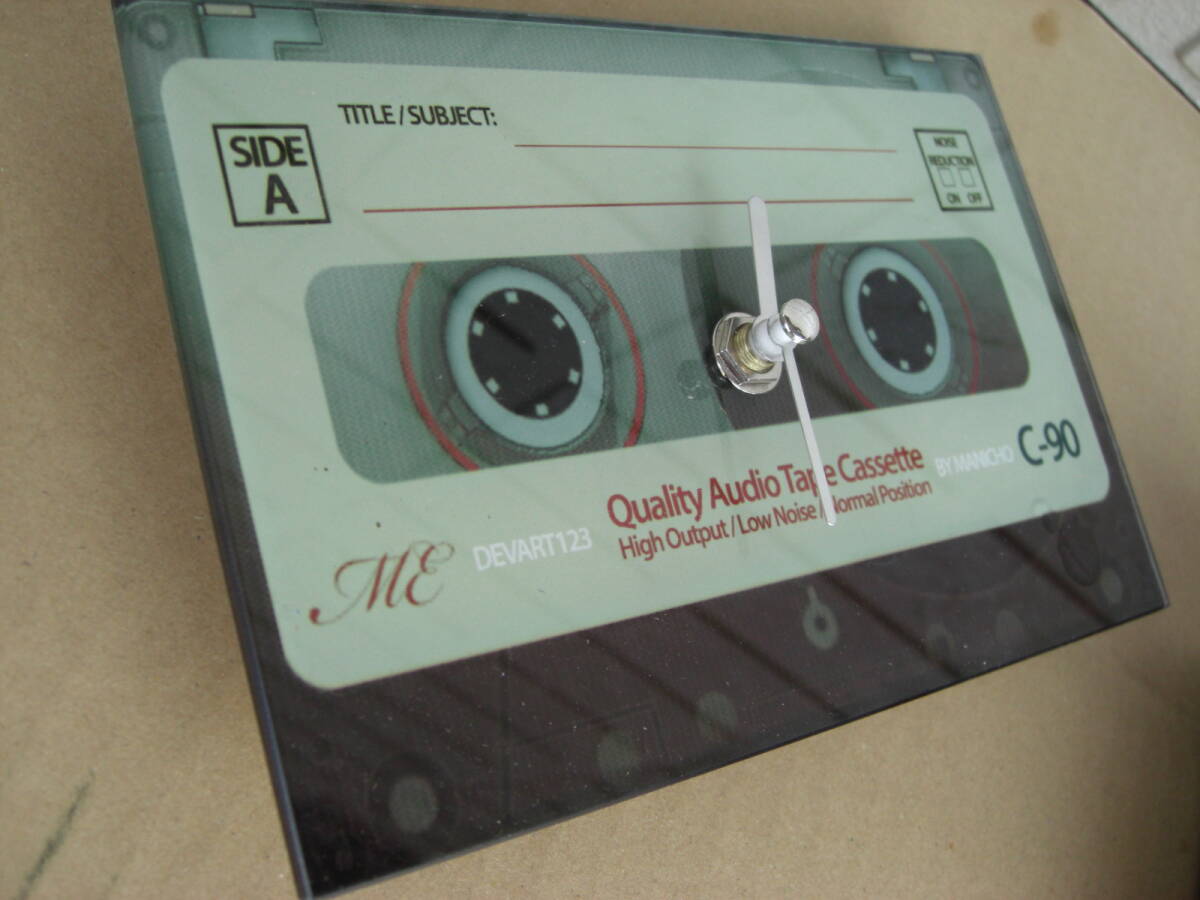 カセットテープ テーブルクロック アメリカン雑貨 置き時計 素材ガラス 80s ガレージインテリア ブルックリン
