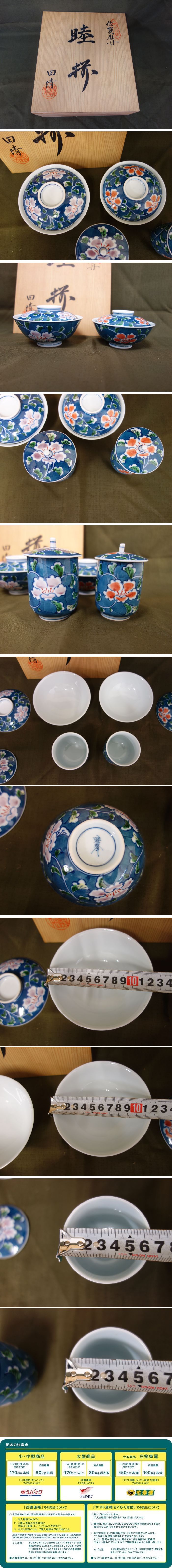 【中古】M▽佐賀牡丹 睦揃 田清 夫婦茶碗 湯呑 ペア 蓋付 (37791)