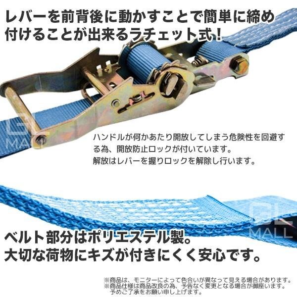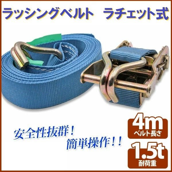 【送料無料】ラチェット式 ラッシングベルト 1.5T4M タイダウンベルト荷締め 耐荷重1.5t 長さ4m 幅37mm フックロープ