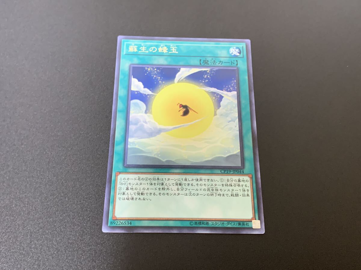 | 商品説明 | 商品説明、注意事項全てご覧の上で入札をお願いします。 入札して頂いた場合、上記に同意して頂いたと判断致しますので予めご了承下さい。 他の商品との同梱も可能です。その際は商品名とご一緒に取引ナビで必ずご連絡下さるようお願いします。 6枚までは定形郵便84円となります。それ以上ご希望の場合はその旨お伝え致します。 商品到着後、必ず受取連絡は行うようお願い致します。 又、不手際があった際は取引ナビでご連絡下さるようお願い申し上げます。 ■商品状態 【蘇生の蜂玉】レアです。 このカードの状態は「B」です。 カードの状態は下記のようにS~Dにて表しております。 又、出品物によっては下記表現ではない場合が御座いますが 少しずつ修正していきますのでご理解下さいませ。 「S/ミント」 (未使用・パックから開けたばかりの状態。傷 汚れがほぼない物。) 「A/ニアミント」 ( 開封直後によくある綺麗な状態。若干の傷、痛みがある状態) 「B/エクセレント」 (多少の傷、痛みが見受けられたりする状態。) 「C/ベリーグッド」 (目立つ傷などがあったりする状態。スリーブをつけてプレイする分には差し支えのない状態。) 「D/プアー」 (傷、汚れがかなり目立つ状態。傷を気にされない方向け。) 「+-」で状態の補足を行う場合が御座います。 +=該当のランクより若干良いが1ランク上げるほどではない物。 -=該当のランクより若干低いが1ランク下げるほどではない物。 レリーフ特有の凹凸、反りに関しましては上記状態には反映しません。 又、海外版のお品は作りが粗いため、初期傷等が多い場合が御座います。 出来る限り当方が丁寧にチェックを行っていますが、人の手によるものですのでどうしても見落としなどがある場合が御座います。 過度に気にされる方は入札をご遠慮下さいませ。 表現の仕方など人それぞれ感じ方が違います。上記を踏まえた上で御入札を宜しく御願い致します |