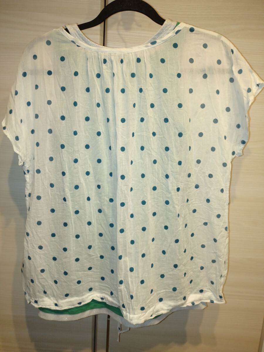 サイズ:どちらもレディースMです。カットソーはタグにバスト79〜87と記載されています。また、平置き素人採寸ですが、身幅53センチ、着丈56センチです。