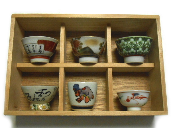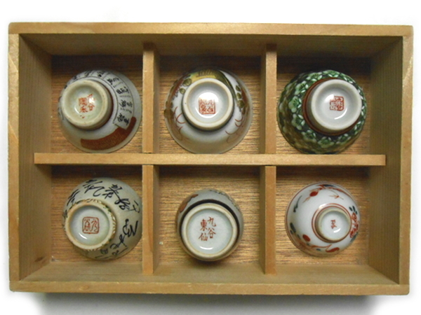 ご覧いただきありがとうございます。当商品は、九谷焼 陶秀 邦泉 東仙 仙守等 盃 花詰文様 猿文様 花・山水文様等 6種です。大きさは、花詰文様が直径約5.8cm×高さ約3.6cm。底径が約2.9cm。猿文様が直径約4.4cm×高さ約4.1cm。底径が約3.0cm。花・山水文様が直径約5.8cm×高さ約3.5cm。底径が約2.9cmです。300804R