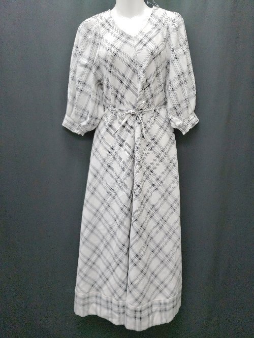 ◇ Every very nice claup チェック柄 七分袖 ロング ワンピース サイズF ホワイト ブラック レディース P