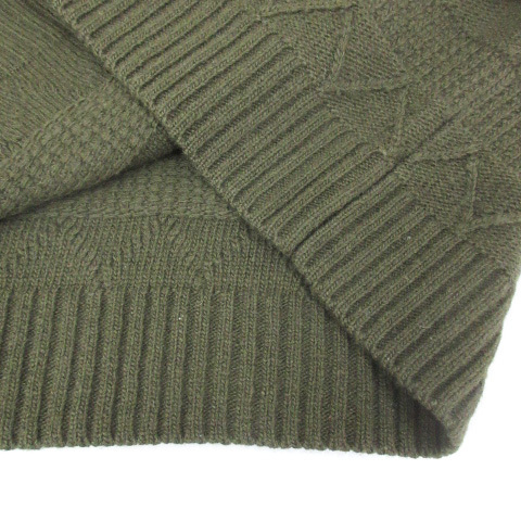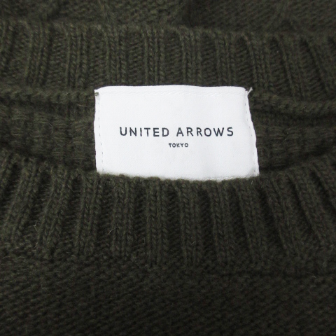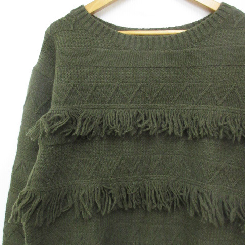 ユナイテッドアローズ UNITED ARROWS ニット セーター ショート丈 長袖 ラウンドネック フリンジ 総柄 F カーキ /FF29 レディース