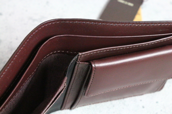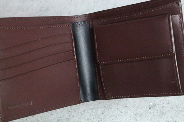 上質なシボ型押しレザーを使用した定番の使いやすい二つ折り財布です。