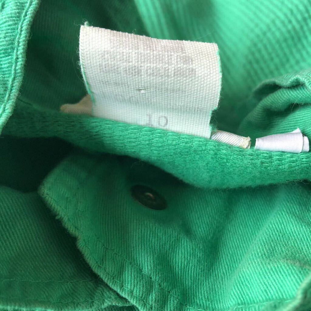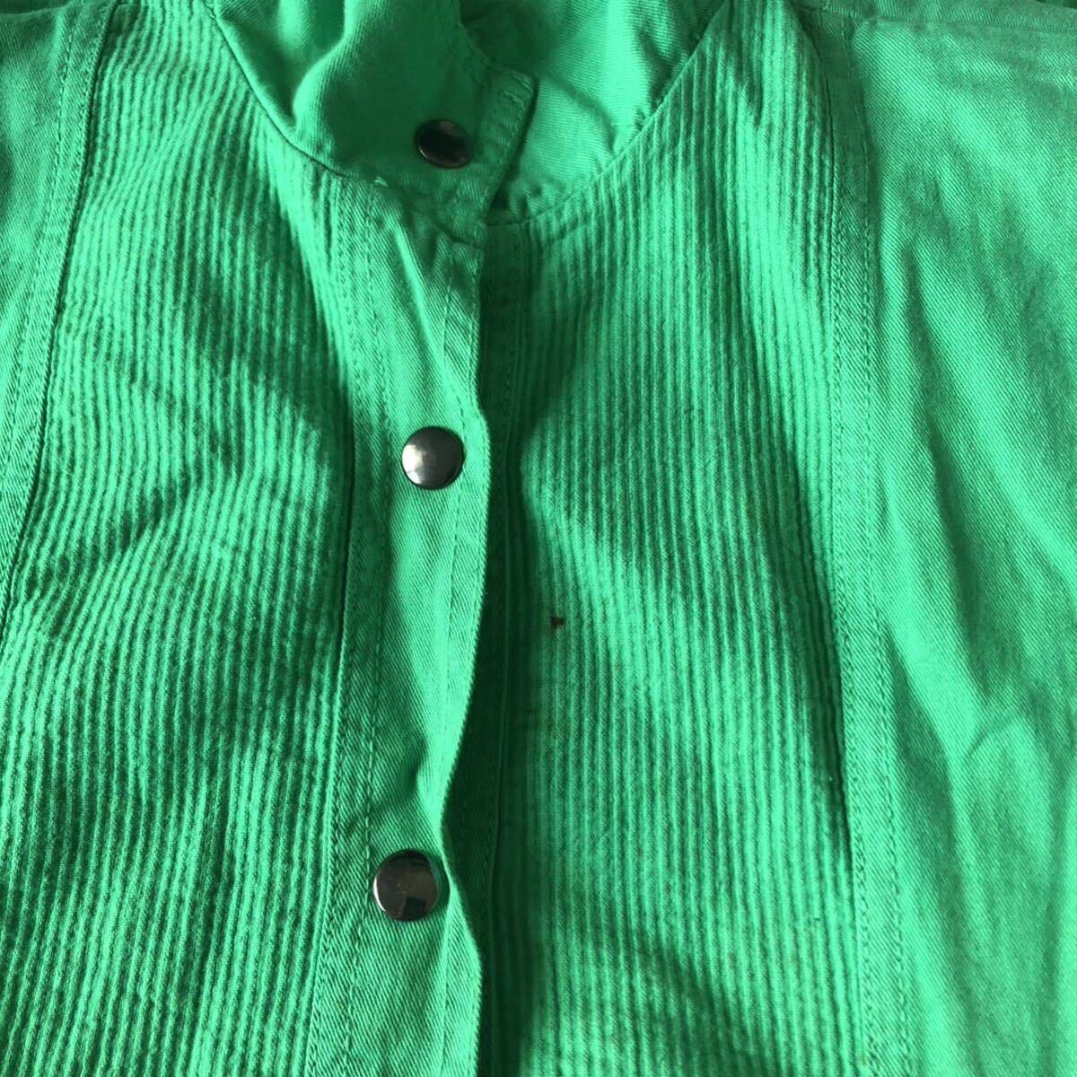 鮮やかなグリーンのつなぎです。