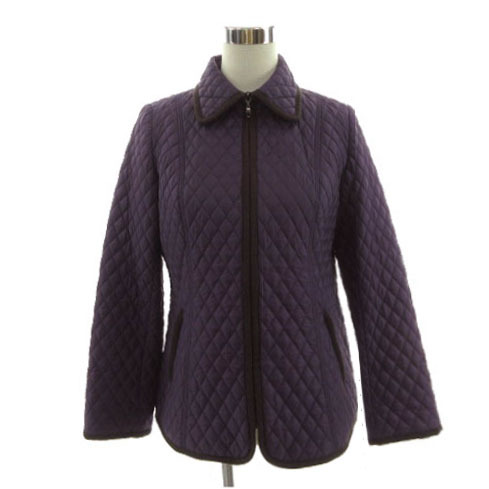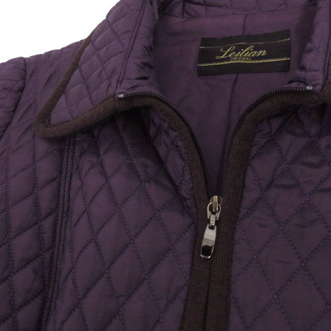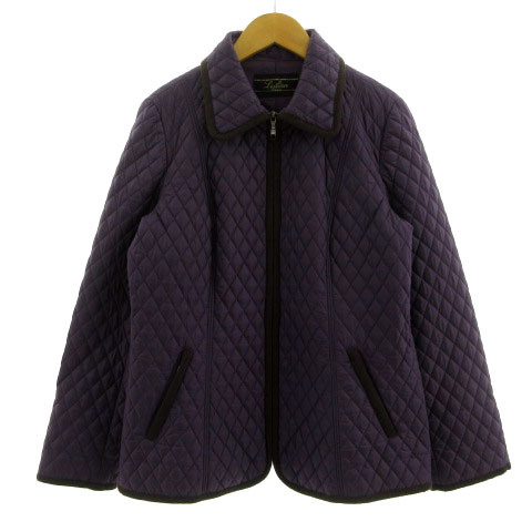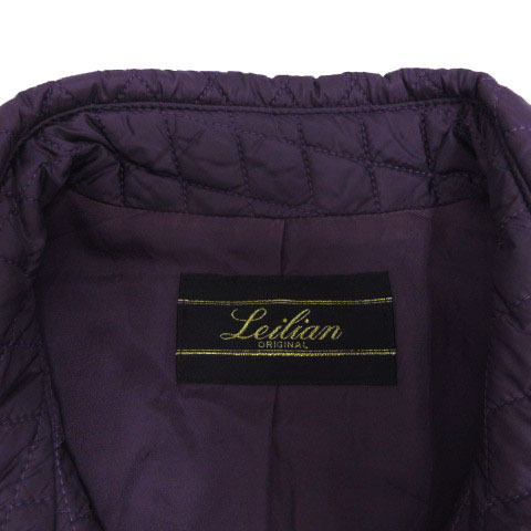 レリアン Leilian ジャケット ステンカラー キルティング パイピング 中綿入り ジップアップ パープル 紫 11 レディース