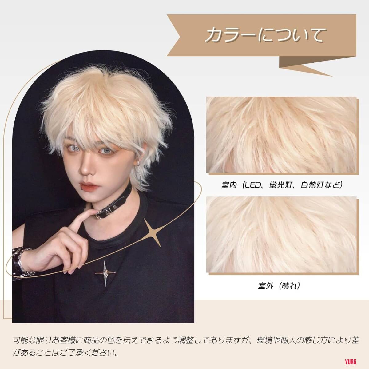 リネンゴールド メンズ ウィッグ フルウィッグ かつら 耐熱ファイバー レイヤーの入った ナチュラル カール 快適 普段使い イベント 学生